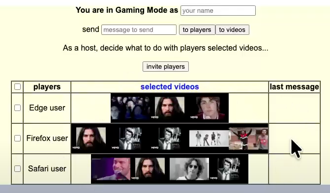 Host view of the selected videos sorted by users