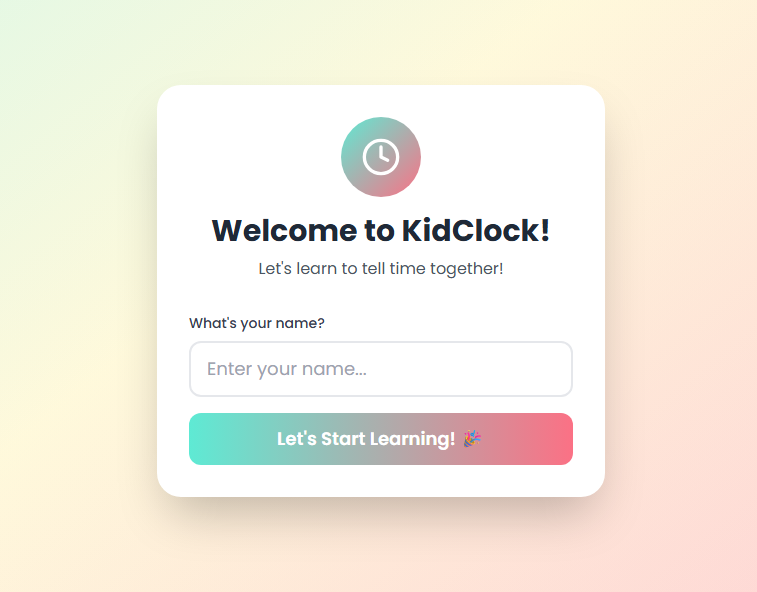 Successfully created an intuitive drag-and-drop analog clock interface that feels natural for children to use. Implemented a comprehensive progress tracking system that motivates continued learning. The app maintains high accessibility standards while delivering a visually appealing experience that keeps kids engaged.