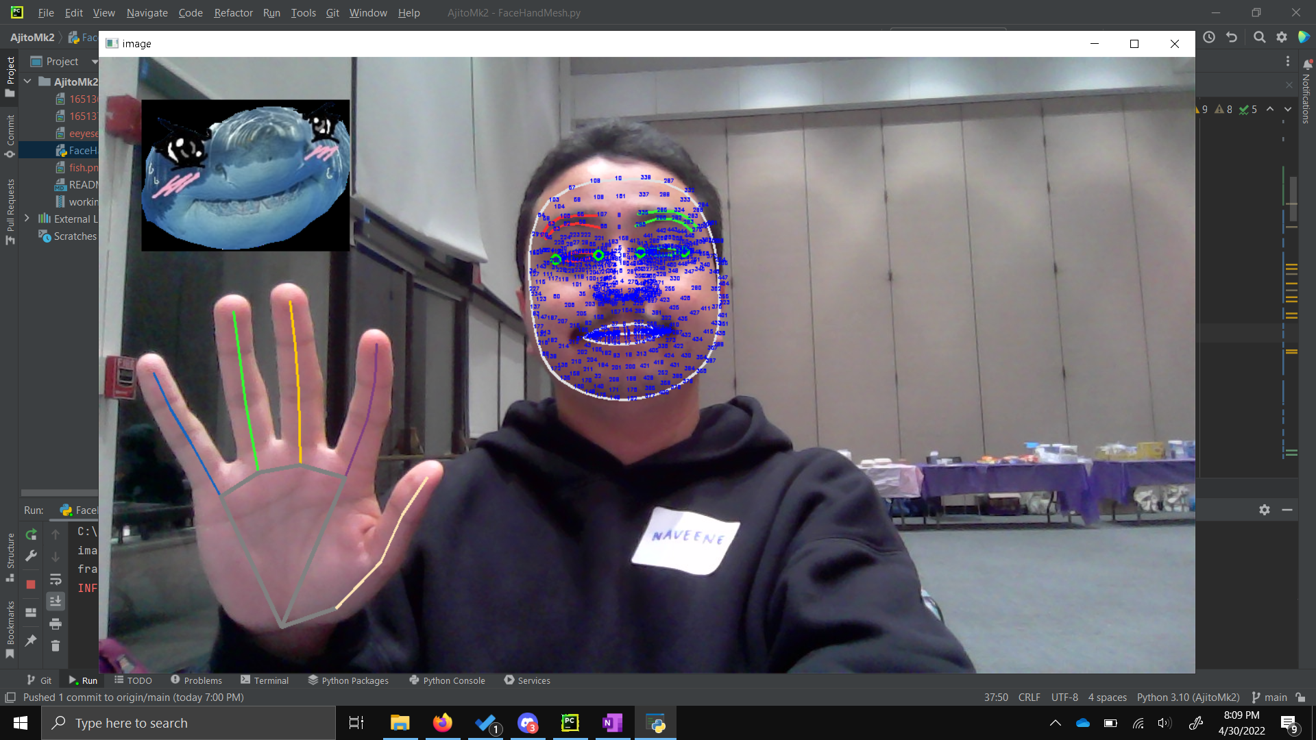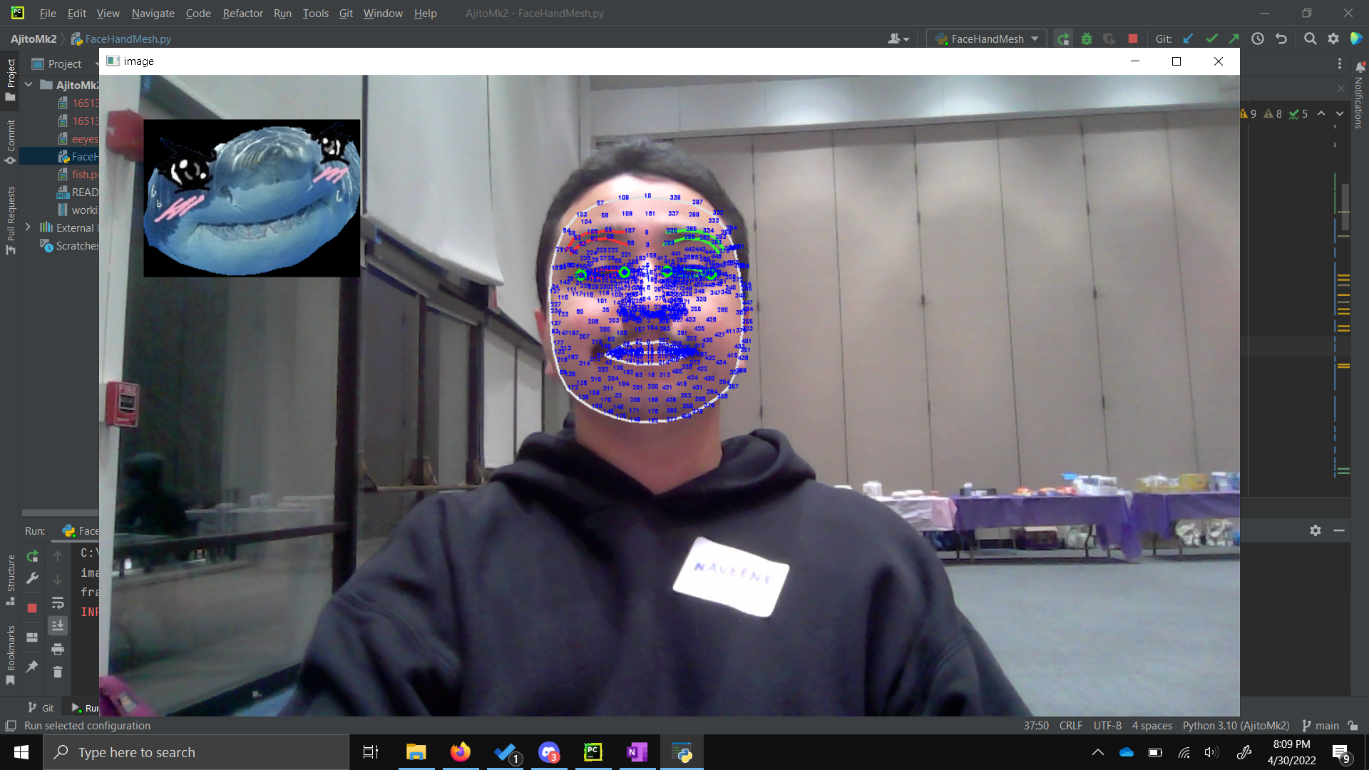 Taking advantage of facial recognition, we were able to map the picture of a cute shark onto the user's face.