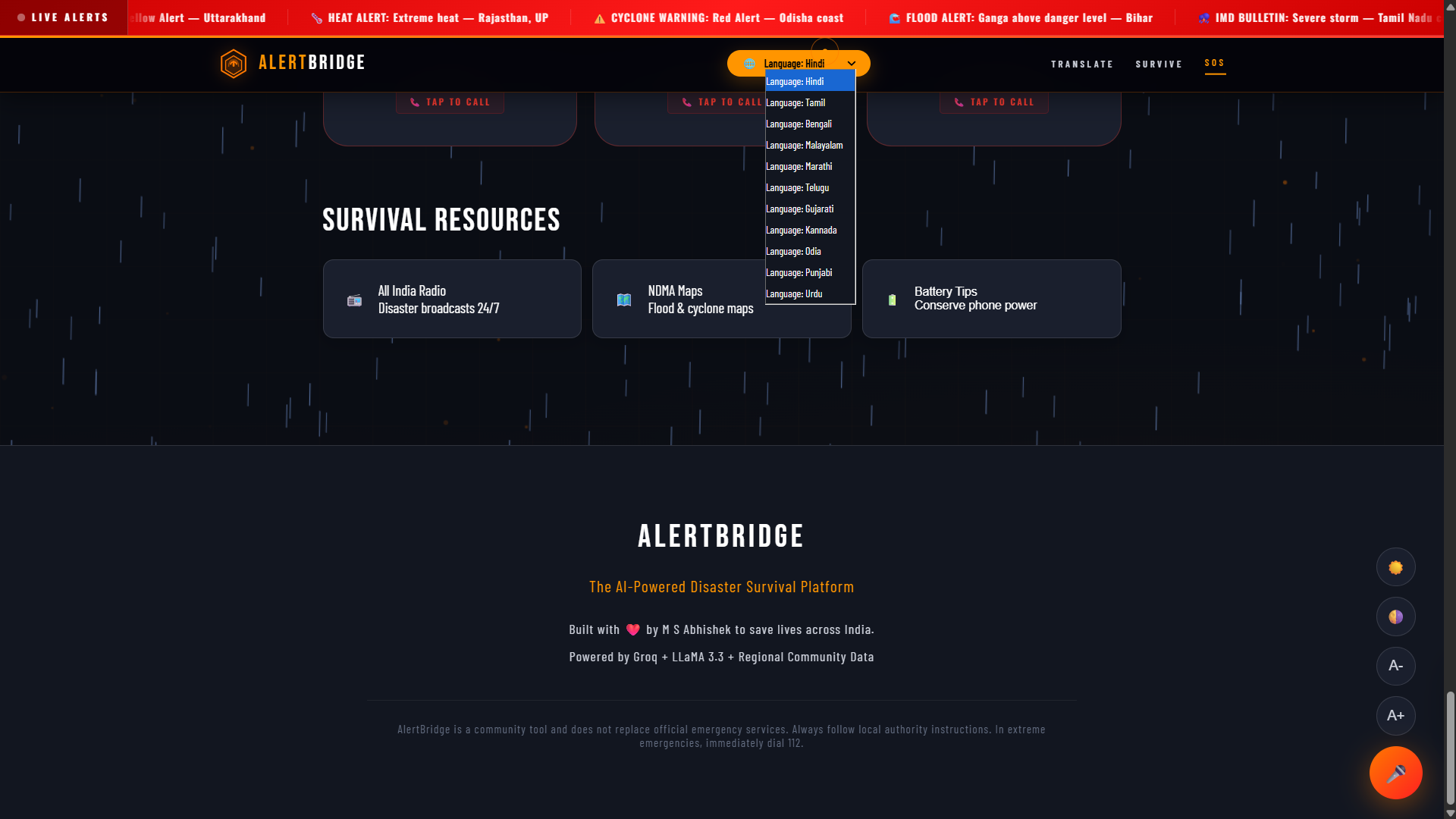 AlertBridge is India’s first AI-powered disaster survival network. It is a "translation bridge" designed specifically for rural communities.