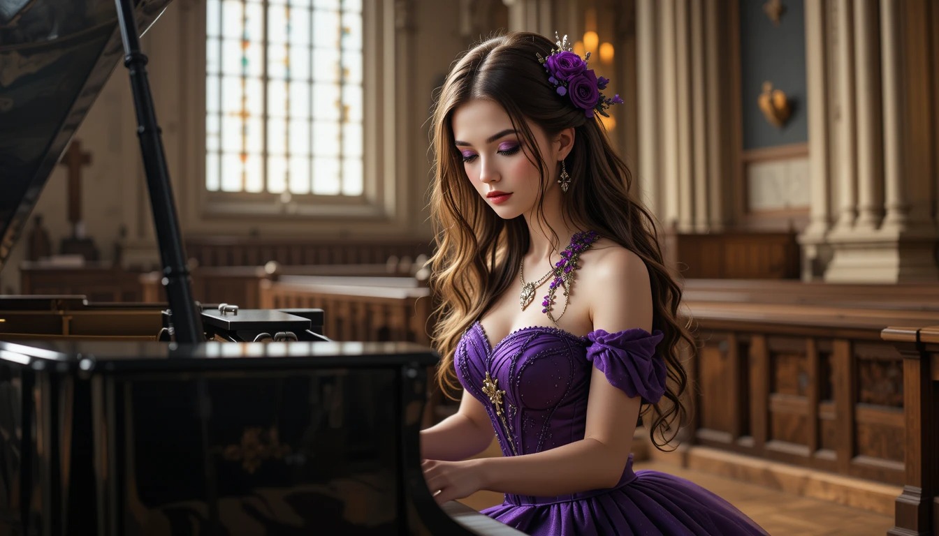 The lady plays a piano