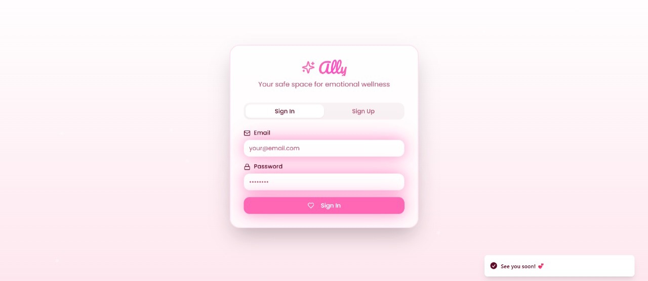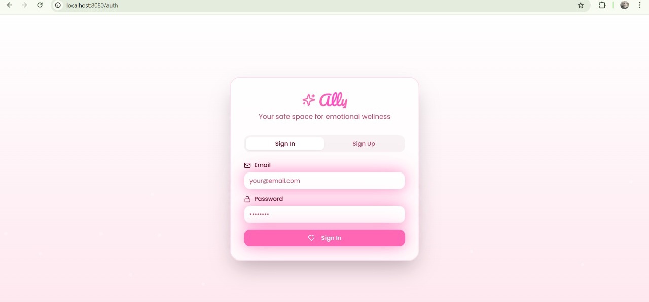 In today’s fast-paced and emotionally demanding world, people often struggle to articulate their feelings. Ally was inspired by the idea that everyone deserves a moment of clarity,a chance to be heard, understood, and supported. We envisioned an emotionally intelligent companion that listens without judgment and helps users turn raw thoughts into positivity and growth.