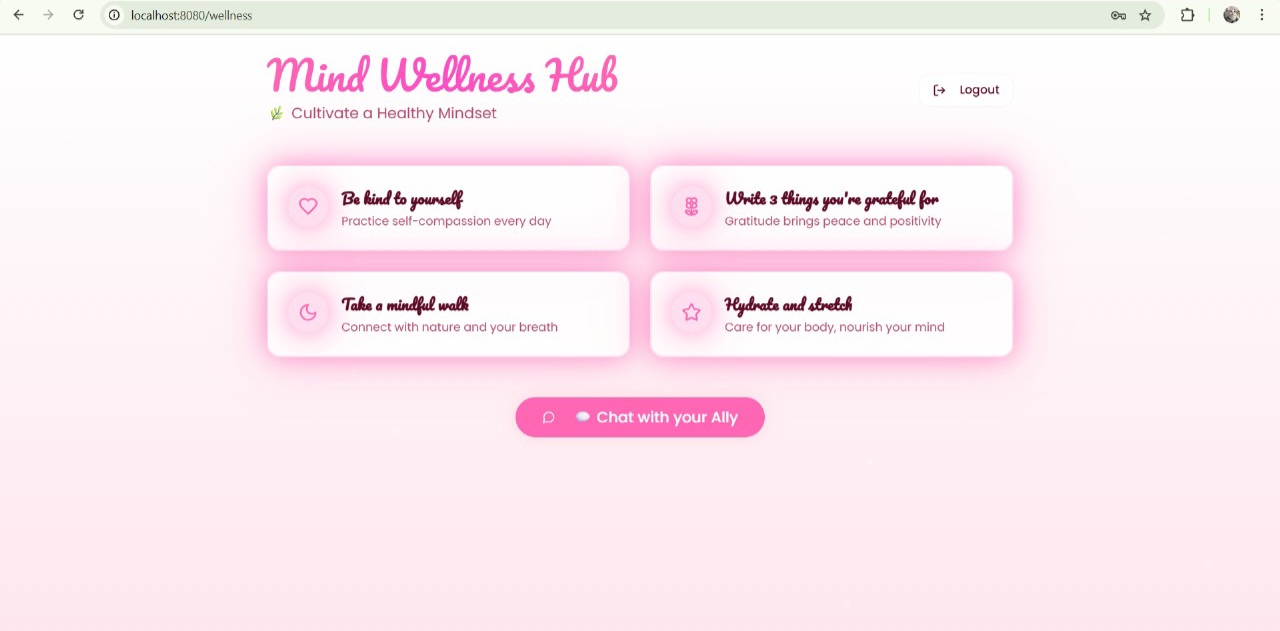 /wellness → Educational section promoting mental wellness habits.