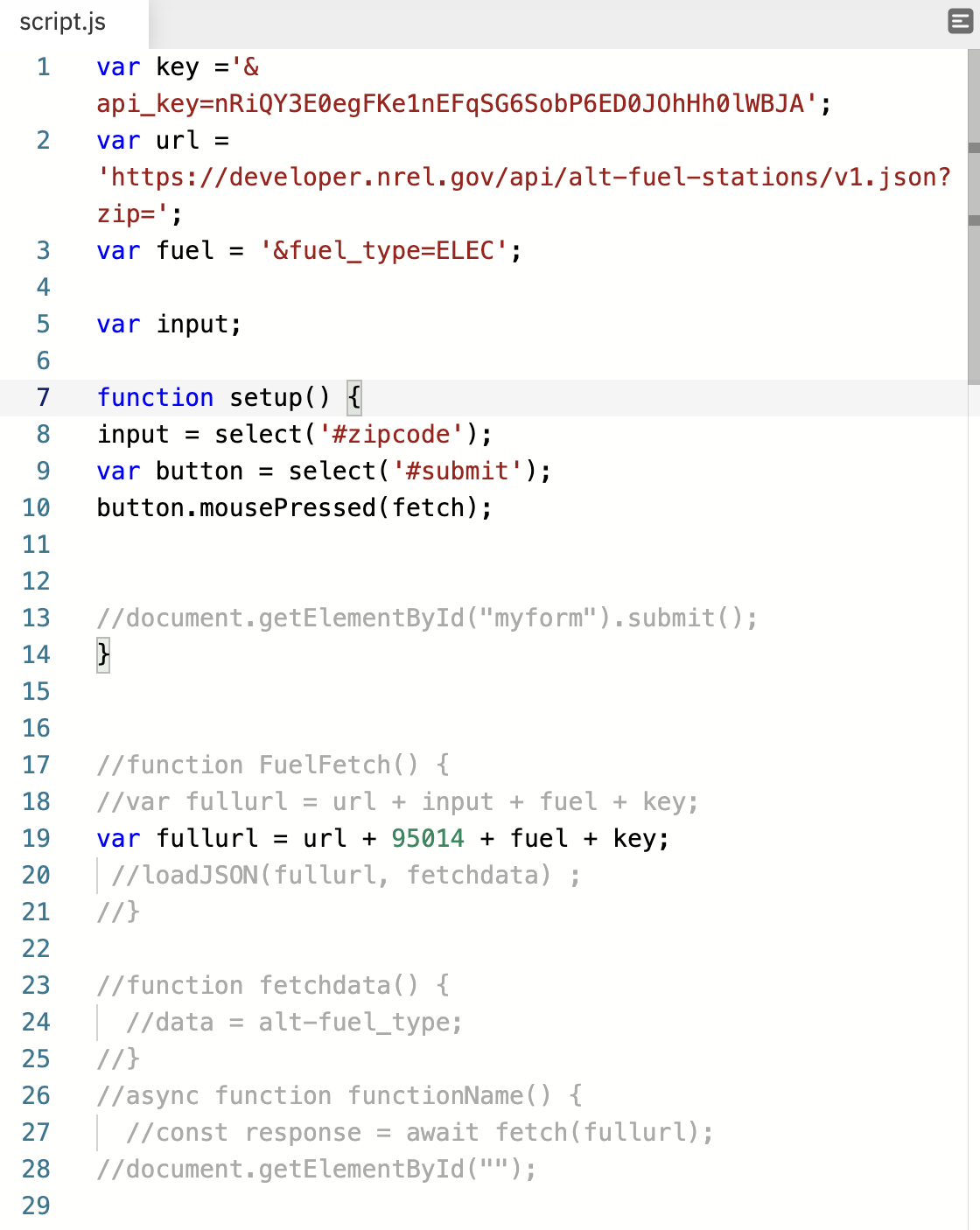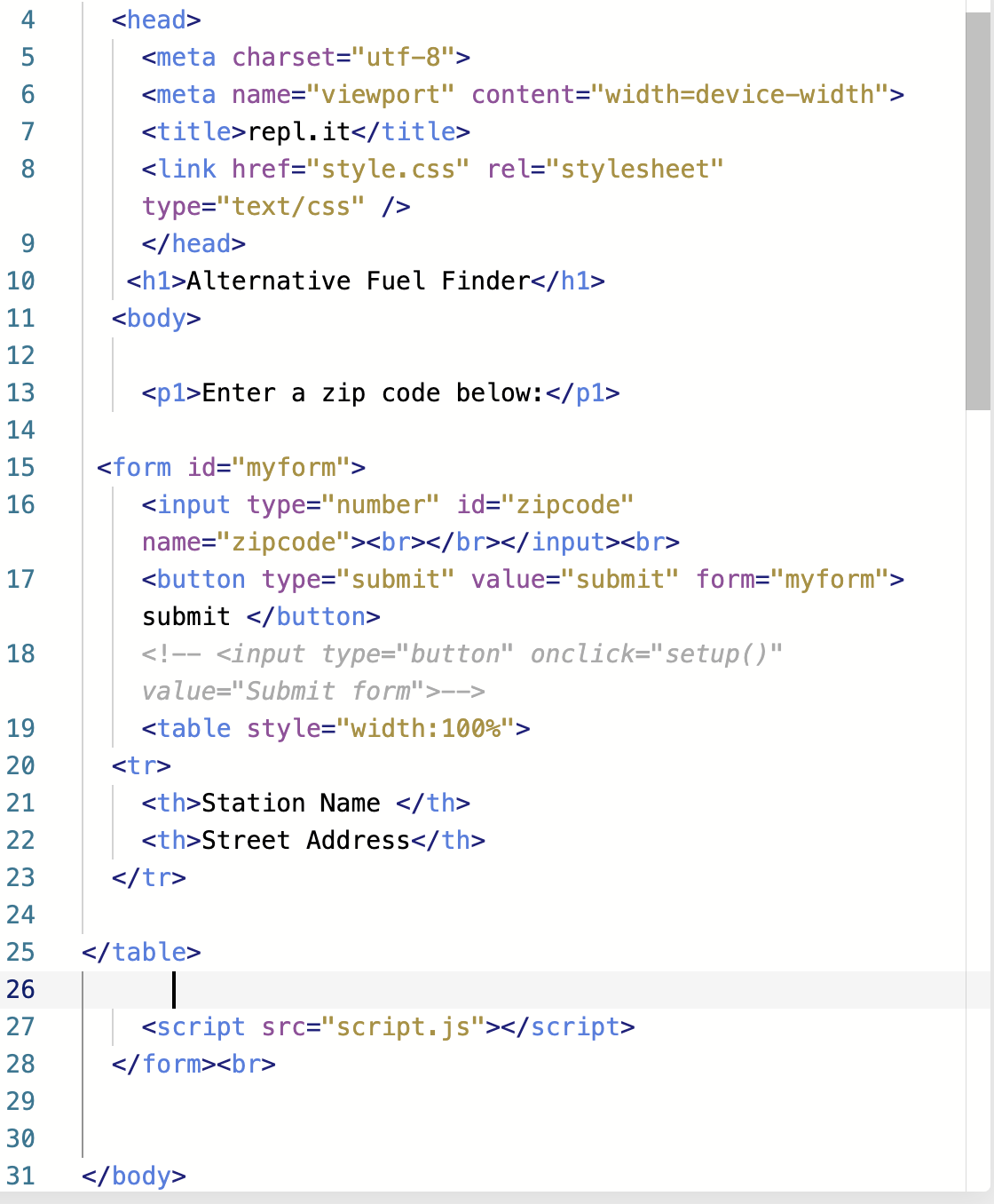 HTML site that takes a zip code and returns info about electric charging stations