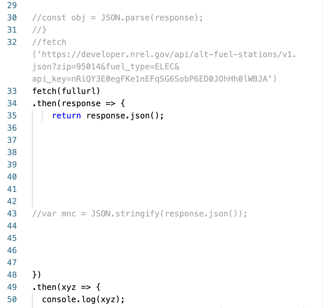 Takes a zip code and returns data from an API about nearby charging stations