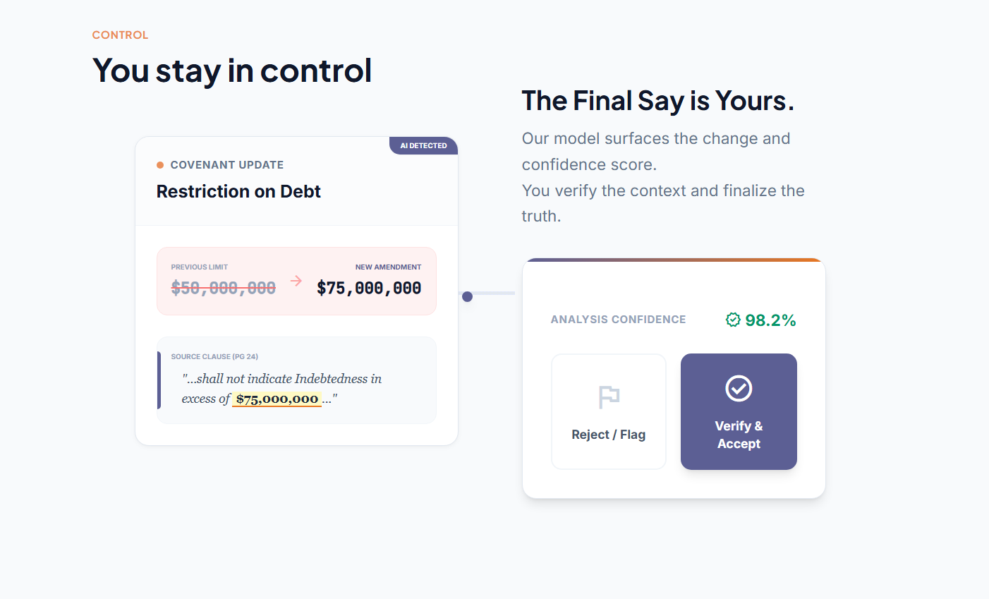 - The AI surfaces changes. The banker makes the call. That's the design.
