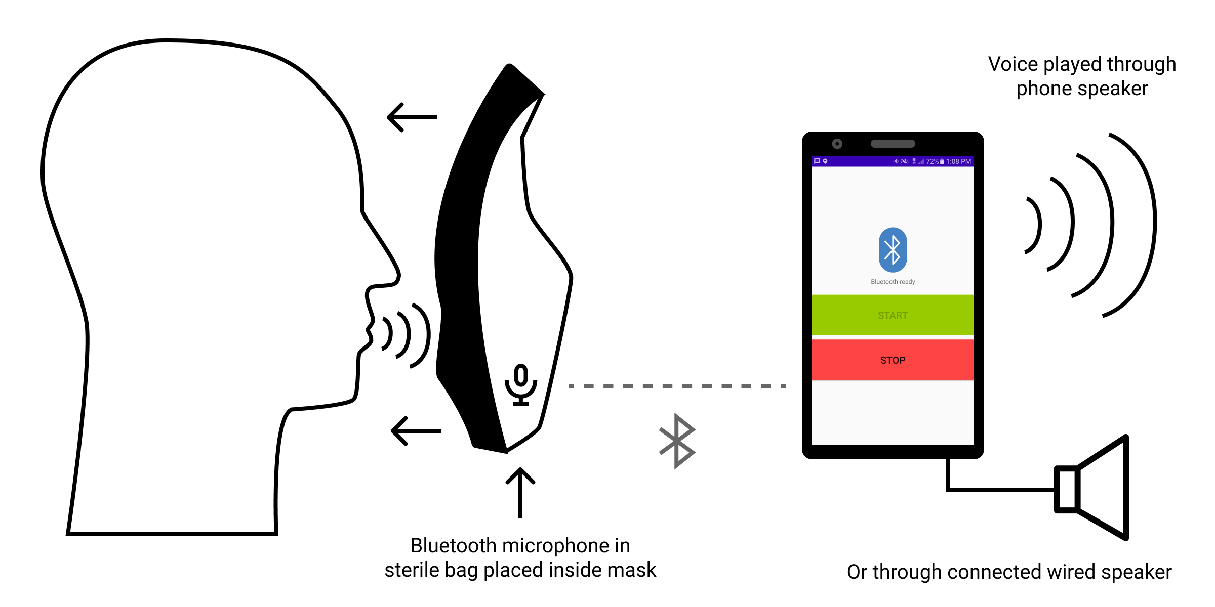 In response to the current shortage of N95 medical masks, new reusable masks for COVID-19 PPE are being developed all over the world. Some of these masks are bulky and can hinder communication by muffling the wearer’s voice, thus making it difficult for people to understand what a mask-wearer is saying. We are currently working on a solution to this problem with Dr. Prakash’s lab at Stanford, creators of the Pneumask, a reusable mask adapted from commonly found scuba masks.