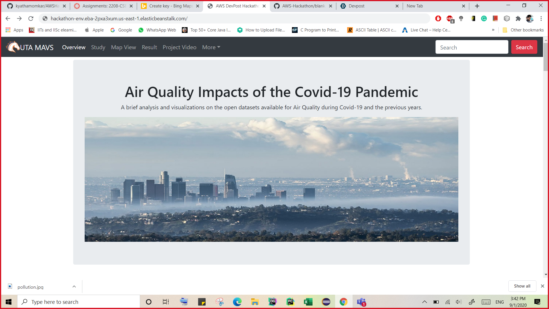 The application is running on python flask hosted on AWS BeanStalk, the datasets are retrieved from https://aqicn.org/ , the maps on the webpage are generated using google maps api and leaflet.js and other databases are from rds.