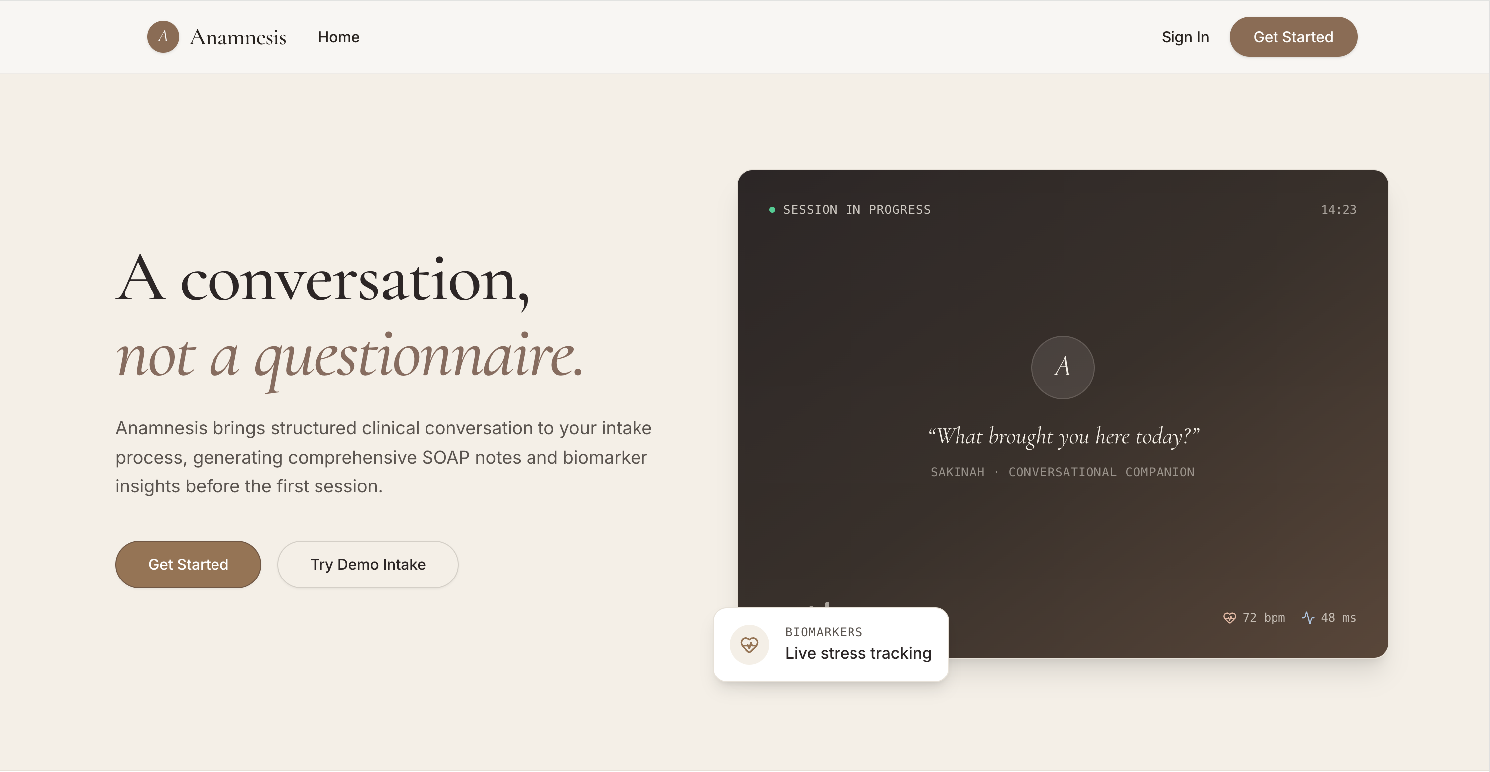 Anamnesis is a mental health intake and matching platform that replaces the clipboard with a conversation.