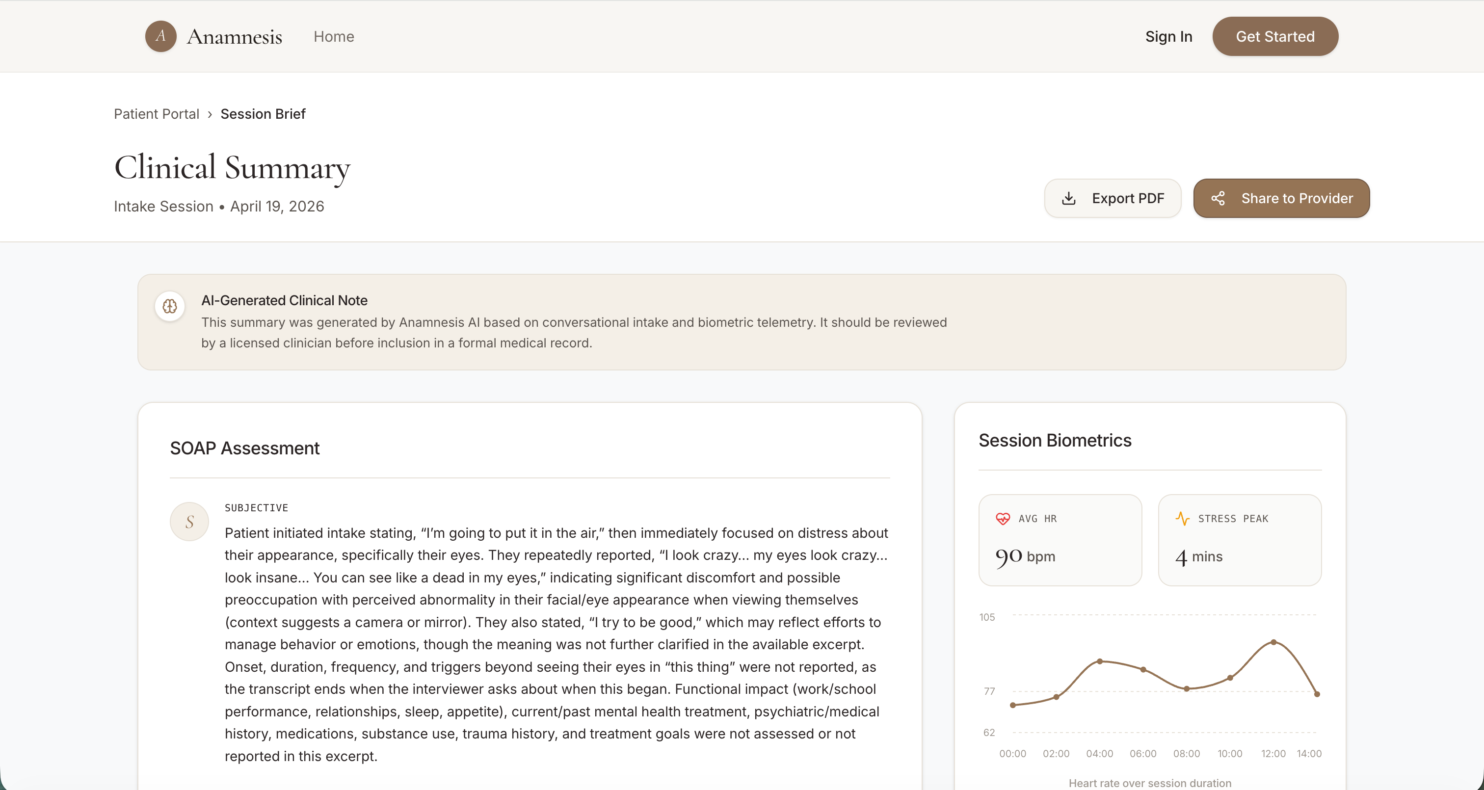 A clinician-facing version of the brief that supports follow-up notes, so Anamnesis becomes the throughline across the whole therapeutic relationship, not just the front door.