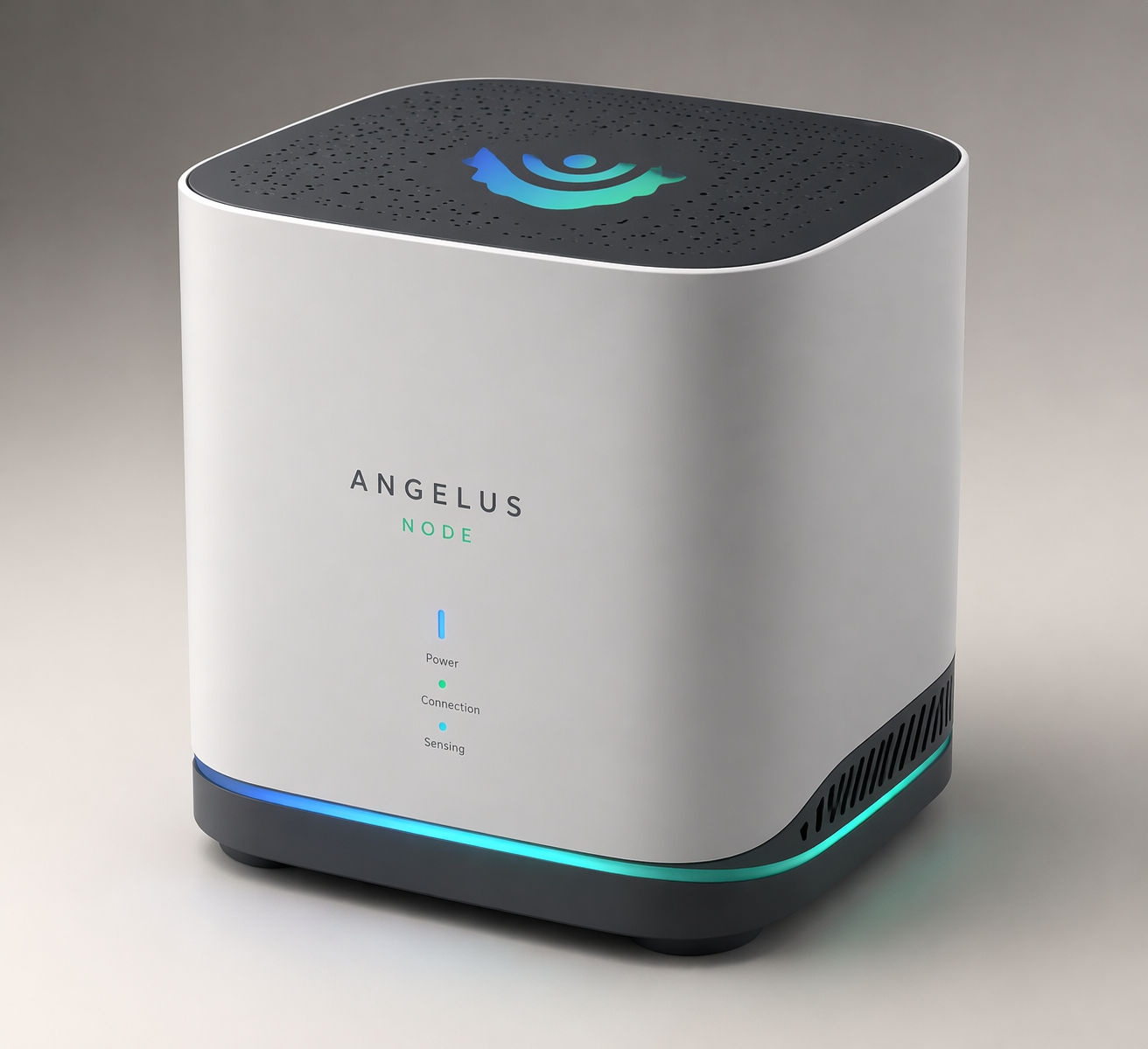 Our solution utilizes Wi-Fi presence detection. This works by analyzing how wireless signals move through a space and how those signals change when a person is present or moving. AI can interpret these disruptions in the WiFi signal patterns to detect movement, location, and activity. This allows our AI system to identify a person and recognize when someone is walking, resting, or needs assistance. This technology is already being adapted into the security and defense sectors, and we hope to utilize it in healthcare. With an Angelus node, we can detect these home WiFi signals to analyze heartrate, movement and activity. Our AI interface then analyzes the collected data, turning it into a readable report for the app users. This can send important notifications and weekly reports to loved ones who want to stay in the know.