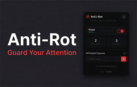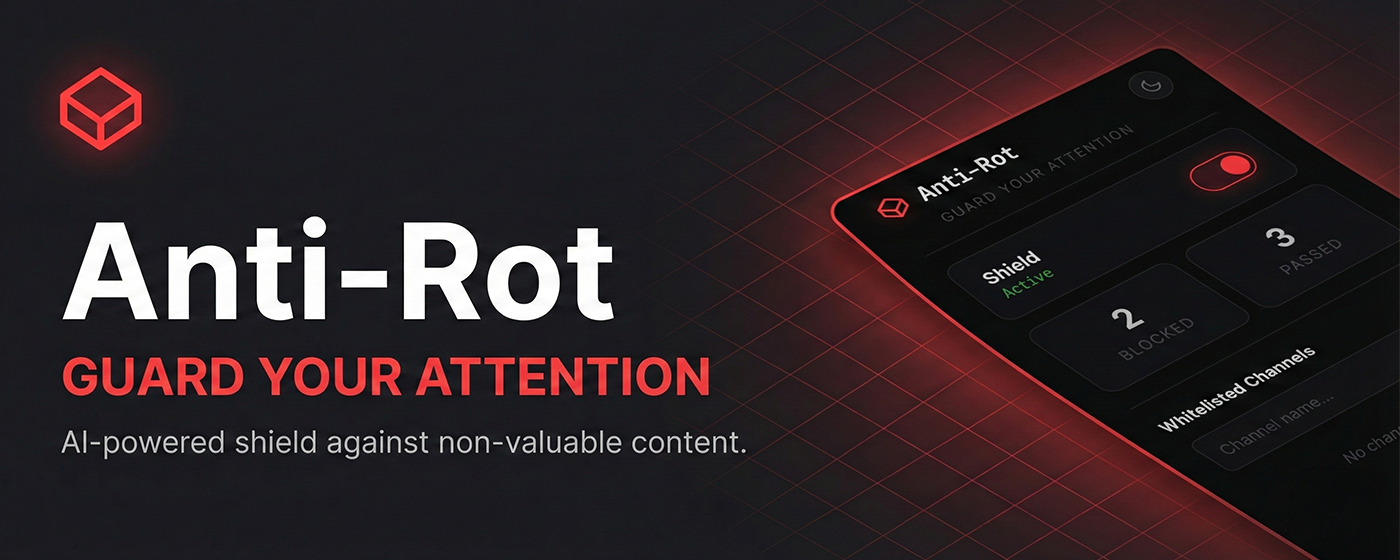 AntiRot uses AI to classify YouTube videos in real-time as valuable or time-wasting. Watch a lecture on thermodynamics? Fine. Fall into a 2-hour brain-rot spiral? Blocked. It's a productivity layer that understands context, not just URLs.