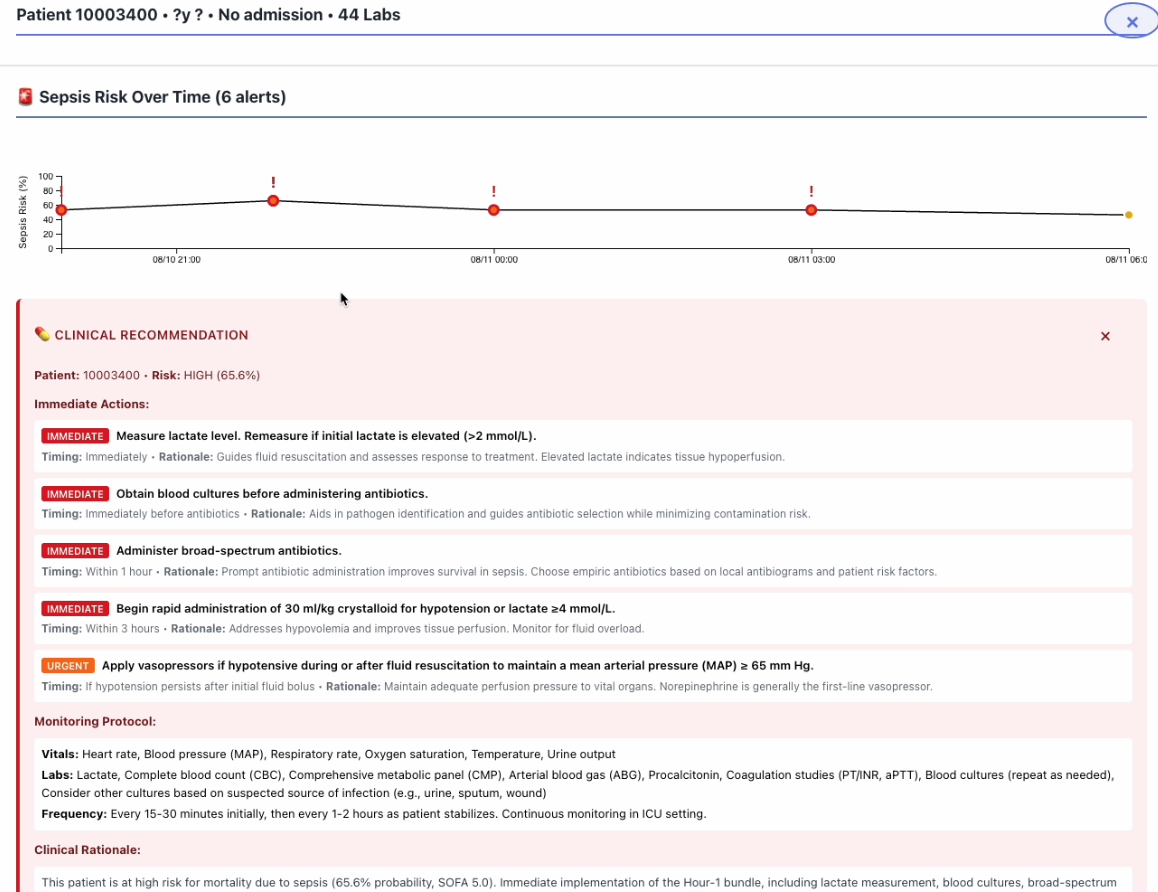 ✅ Evidence-based recommendations grounded in Surviving Sepsis Campaign guidelines