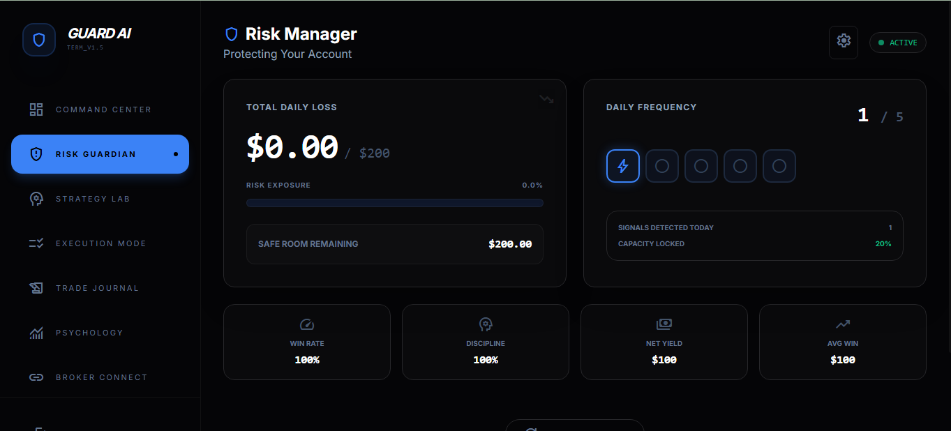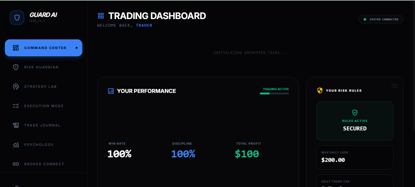 In short, Guard AI is a professional-grade safety layer for trading execution. It uses AI to enforce discipline, validate strategy structure, and prevent impulsive behavior before and during live trading Powered by Gemini 3.