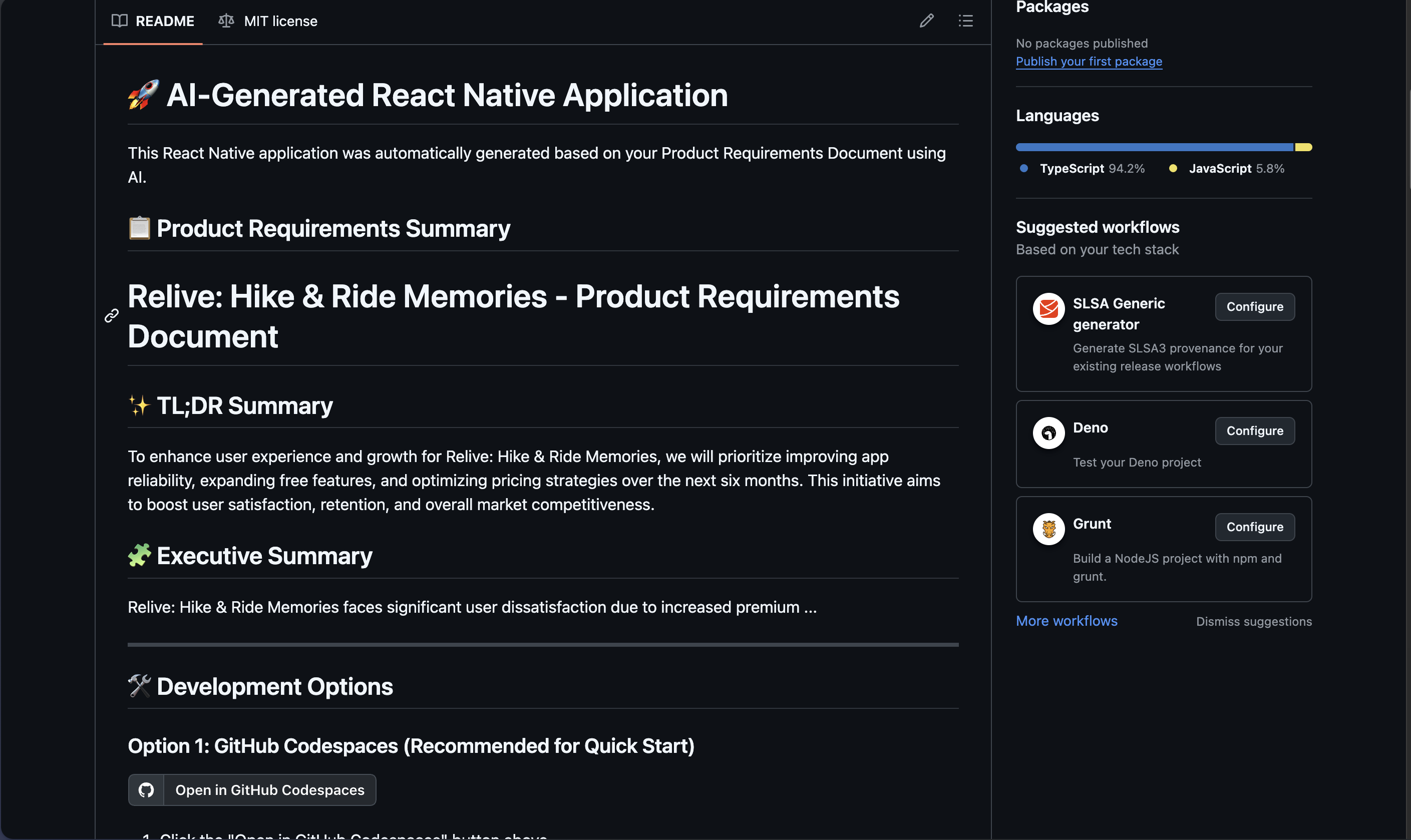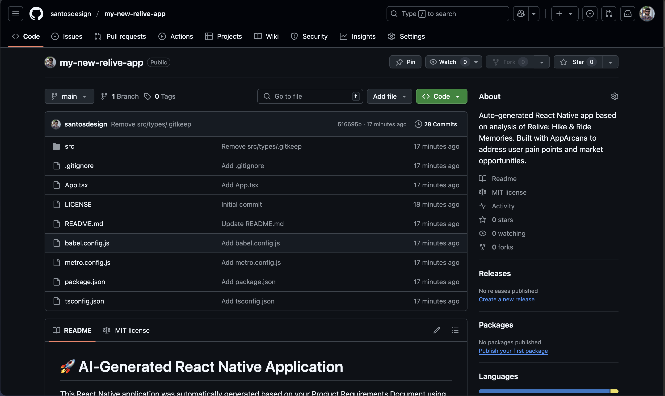 AppArcana pushes a complete React Native MVP to your GitHub repo — including screens, navigation, and core logic tailored to the opportunity