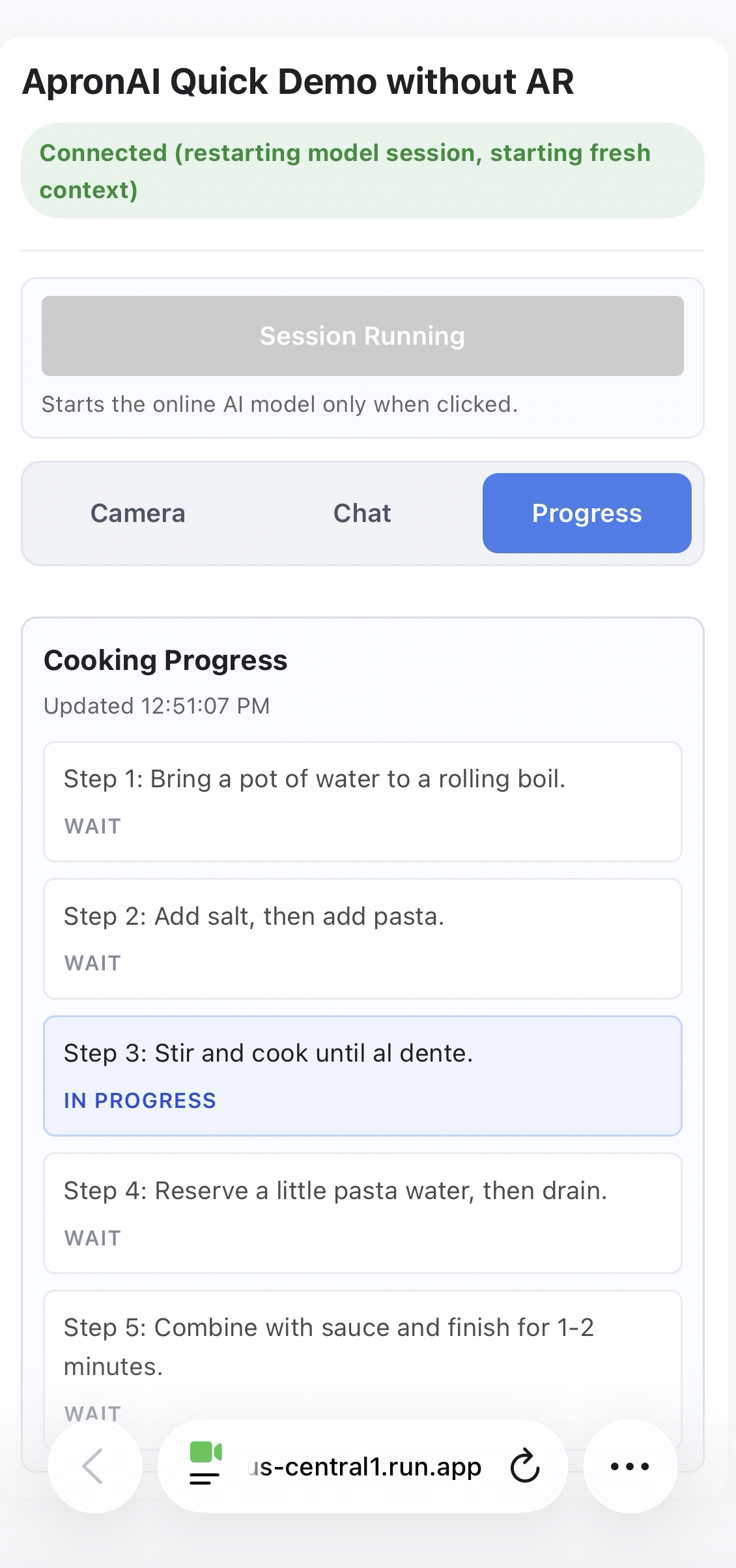 This example showcases how real-time multimodal AI can enhance physical tasks by understanding human actions through vision and audio—a personal exploration of how AI is transforming hands-on work. ApronAI was inspired by this idea to demo a real-time kitchen copilot that can watch what you are doing, listen to you, and guide you step by step.