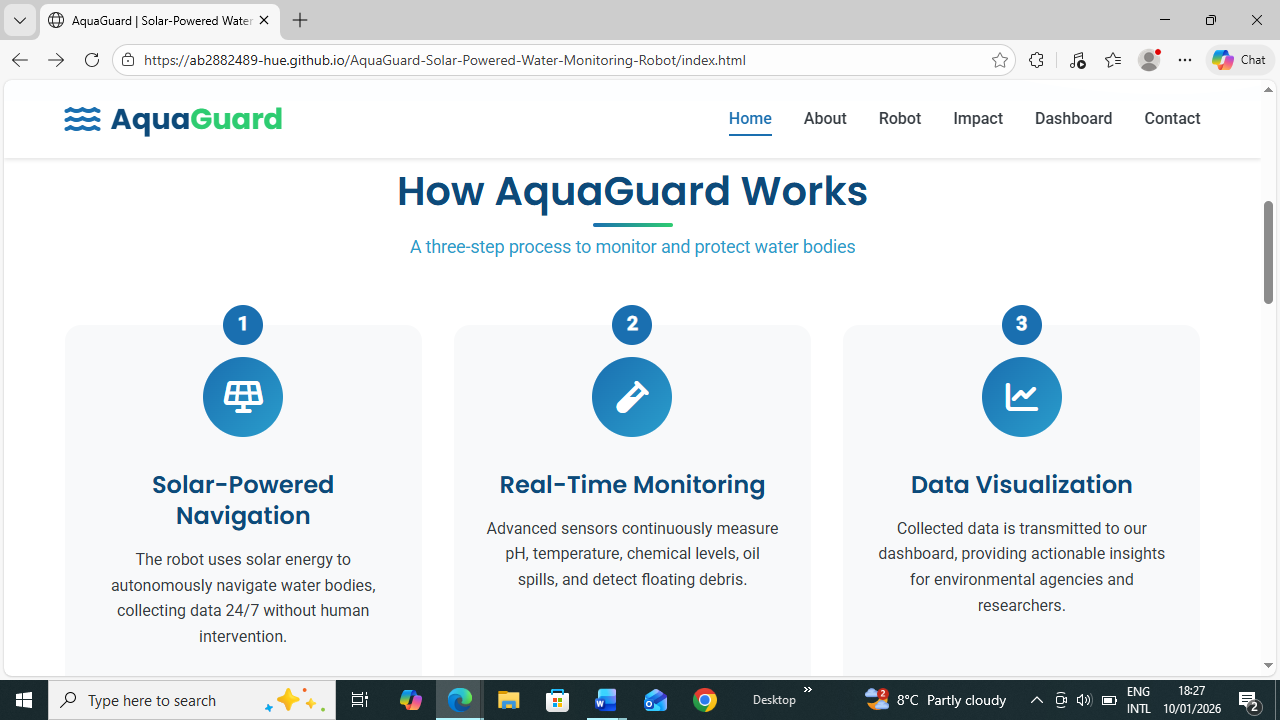 AquaGuard is a solar-powered floating robot that monitors water quality in real-time. It detects chemicals, pH levels, oil layers, and floating trash, and sends live alerts to a mobile/web dashboard for immediate action.