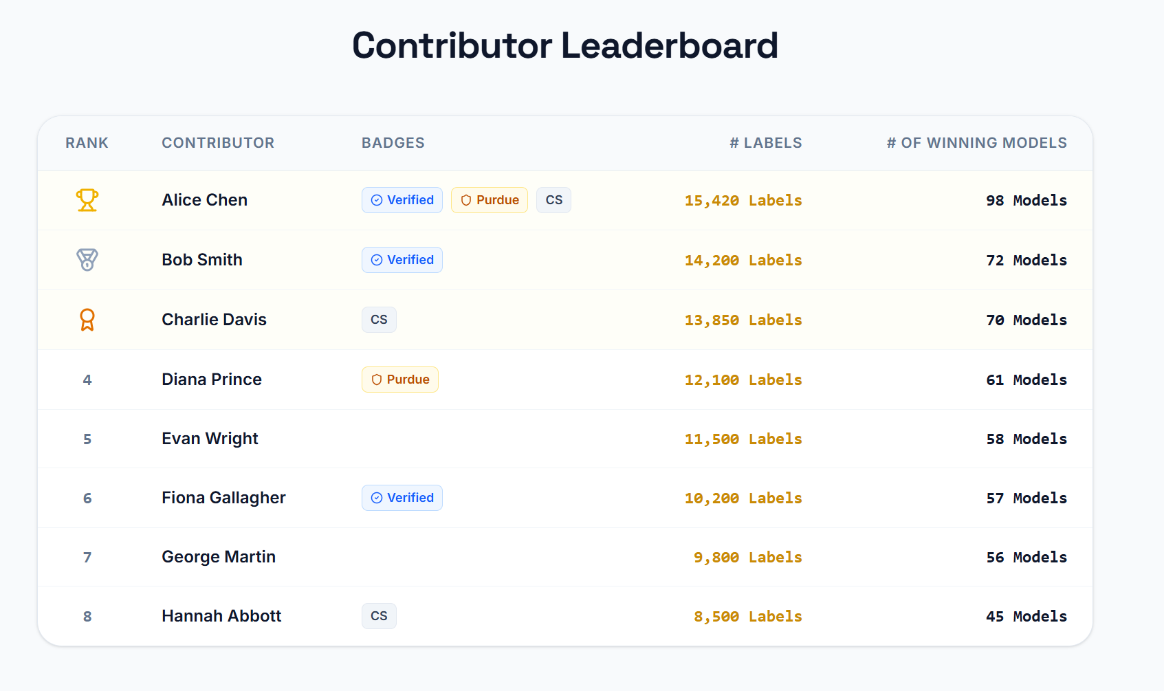 Clients simply have to provide the dataset with a markdown containing the instructions pertaining to labelling and training. We then open the labelling to qualified users and employ techniques to ensure the labelling accuracy. Once we have the labelled data, it is available to programmers worldwide to train a model on. Put simply, the best model in X days gets the reward. Lastly, using inference we provide a cloud service platform for our clients to run the model on.