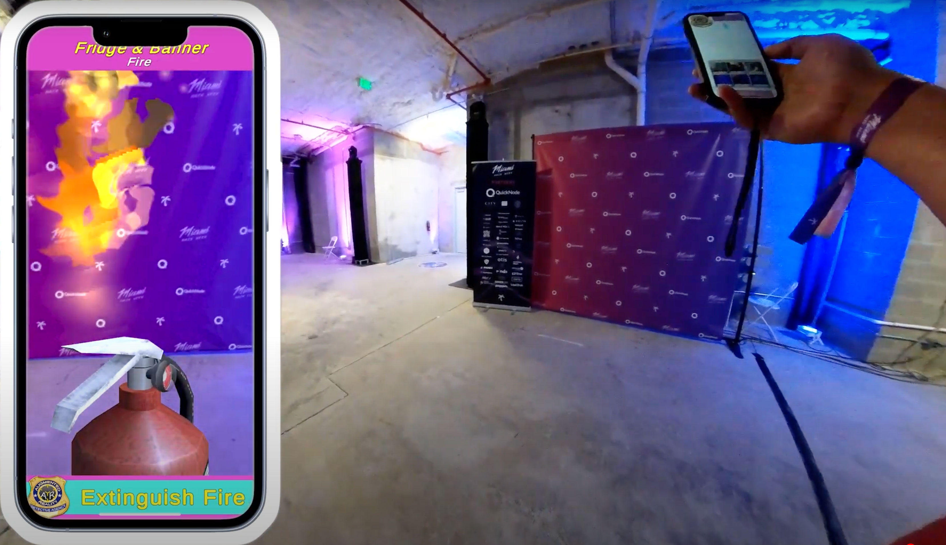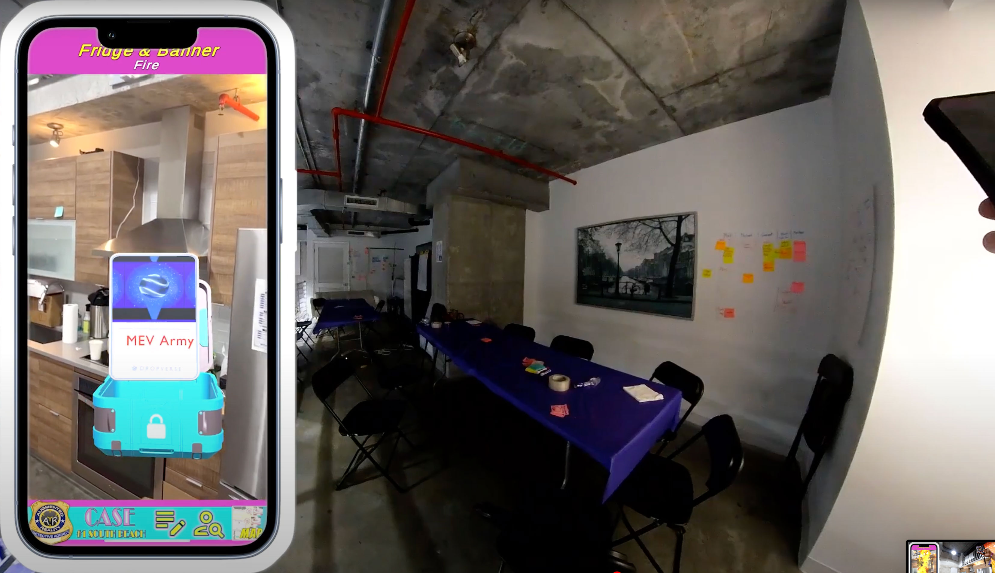What it does: Using TestFlight, you can download AR Detective and you can experience a Location Based Augmented Reality scavenger hunt where you have to visit each Wayspot. The app shows you on the map where to go at either the Niantic AR Loft or the MHW Headquarters. Once you reach that location you have a mini experience to unlock a clue or find a stolen item. There are(12 total different AR interactive experiences) 6 different experiences at each house including putting out the fire on the stove or the Miami Hack Week sign on the 8th floor of Headquarters.