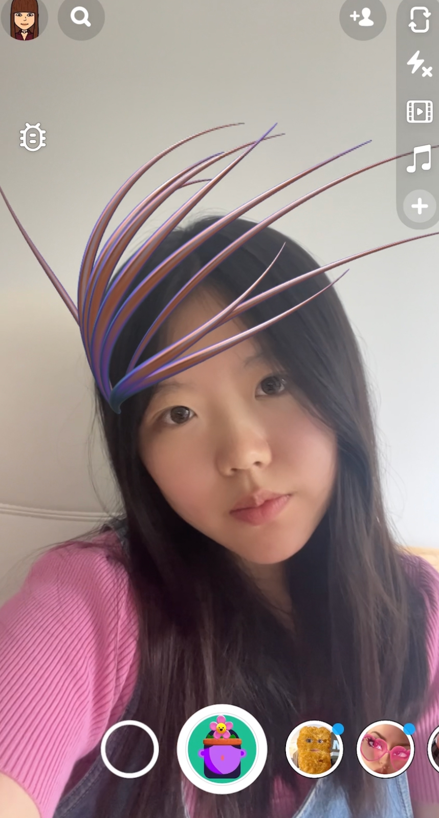 The biggest challenge is the design of the head accessories. We tried to use a generative 3d surface plugin to make it look organic and fluid. But it is frustrating that the plugin brought many problems with UV mapping and exporting. And there are just a few tutorials and documentation of shader editing in Lens Studio.