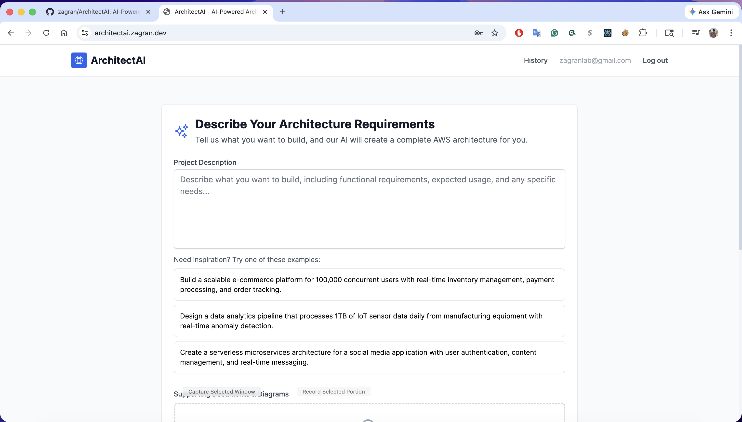 I wanted to eliminate that friction. Describe what you want to build in plain English, get back a complete, production-aware architecture - the kind a senior cloud architect would design - in under a minute.
