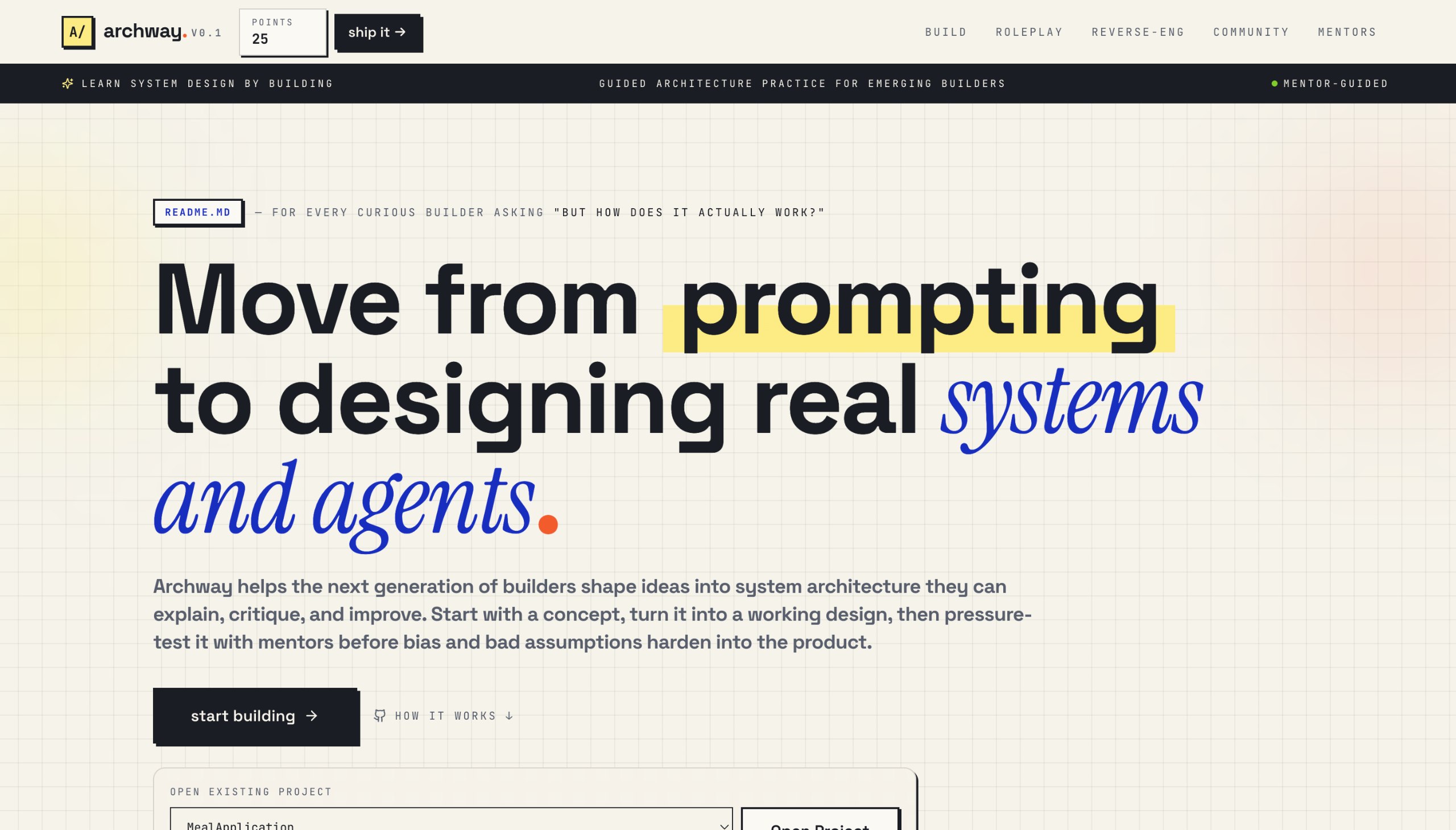 Archway bridges this gap with a guided playground that starts from your idea and helps you build a real architecture while preserving curiosity.