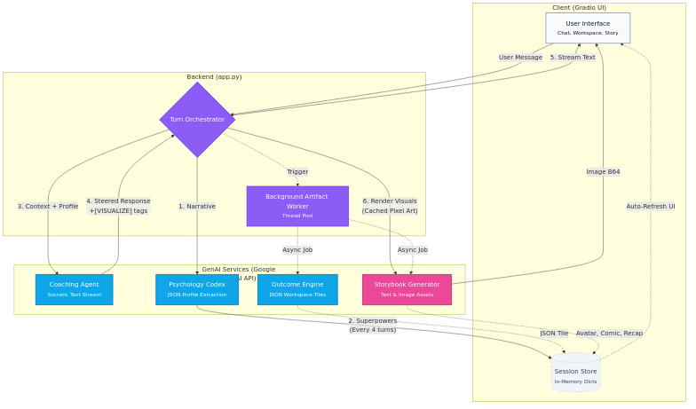 If image generation fails or an API call times out, the system falls back to default assets and narrative summaries so the experience never breaks during demos.