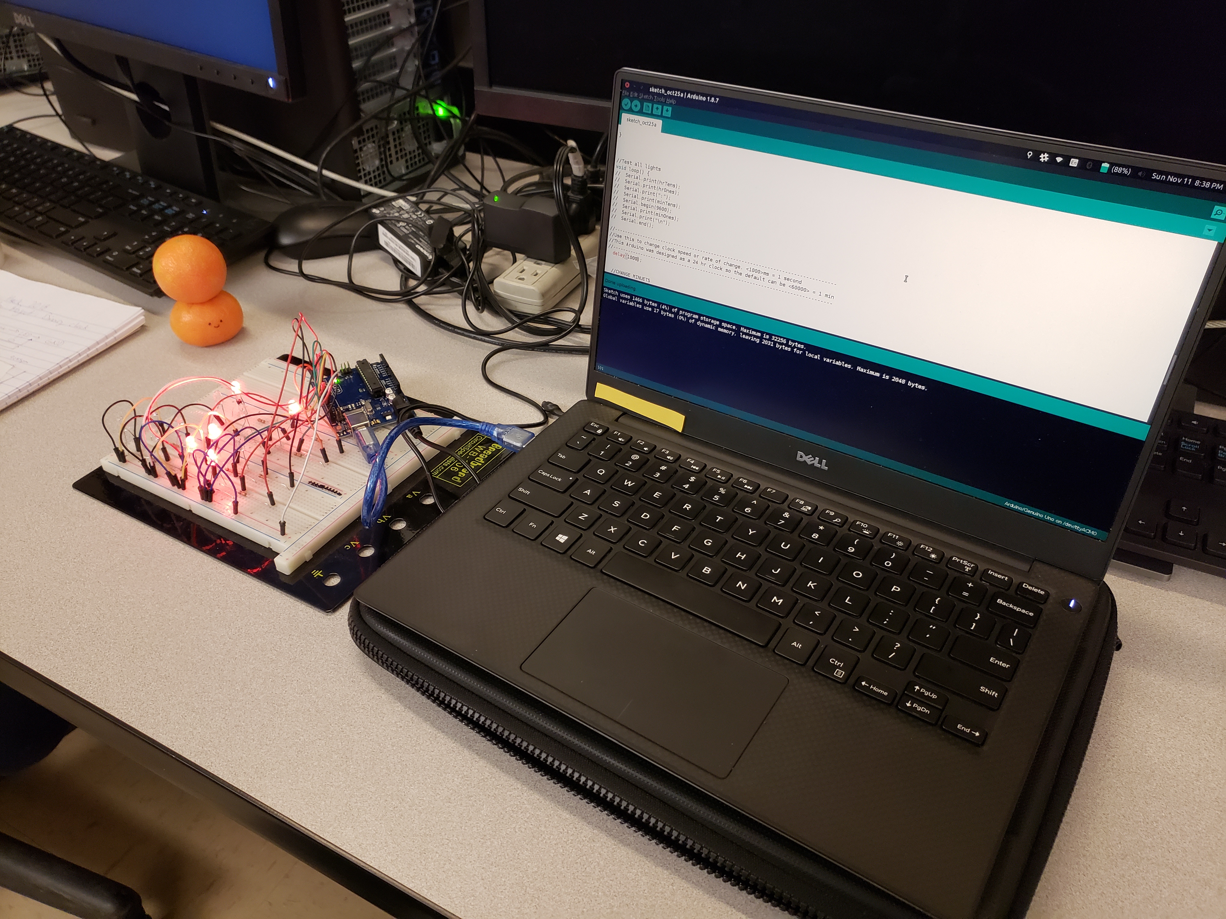 With my knowledge of a basic light build on arduino I wanted to make something a little more difficult. This arduino utilizes the basic lights into an matrix of lights.