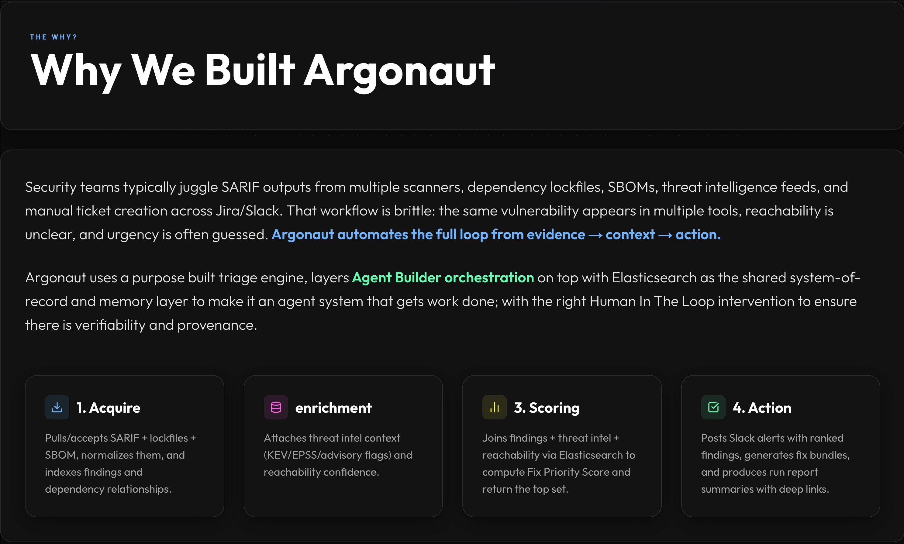 Argonaut is NOT “an AI that fixes your security.” It’s an agent-style workflow that reliably turns security noise into a clean, queryable run, then narrows the noise down to a small set of things. Which a human can confidently act on!