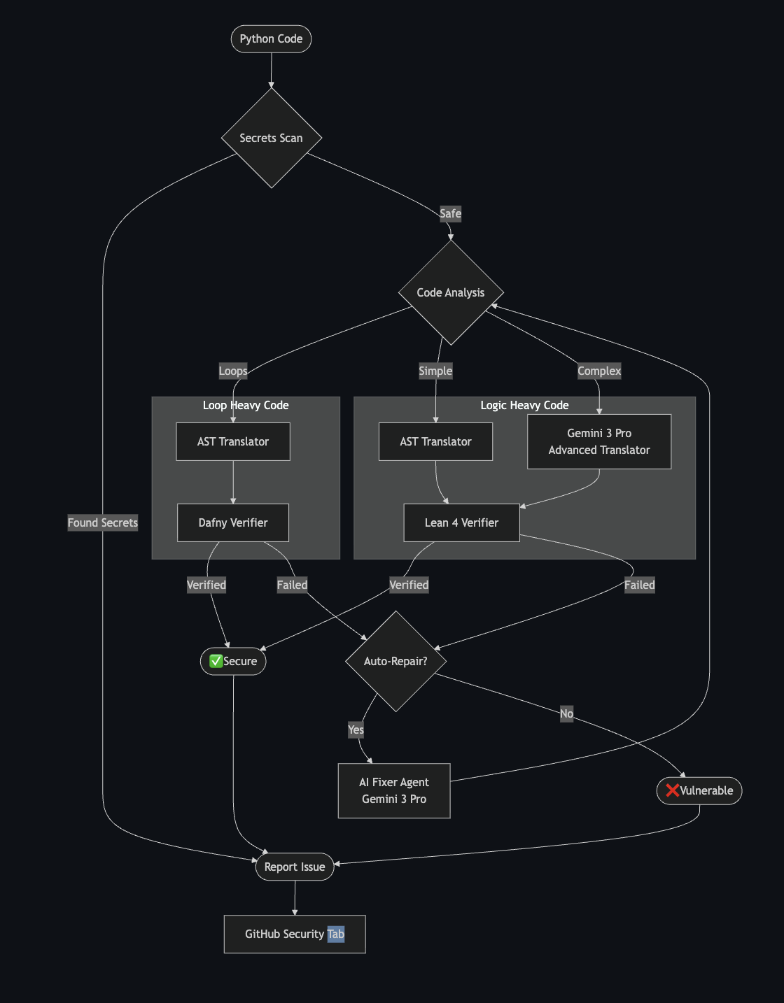 2. The Loop Problem: I discovered midway through that while Lean 4 is excellent for arithmetic verification, it struggles with imperative loops without complex inductive proofs that are hard to automate. I hit a wall where simple loops were failing verification. To overcome this, I made the architectural decision to integrate Dafny as a second engine specifically for loop-heavy code. Orchestrating two different formal verification languages in a single pipeline was difficult but necessary to cover real-world code scenarios.