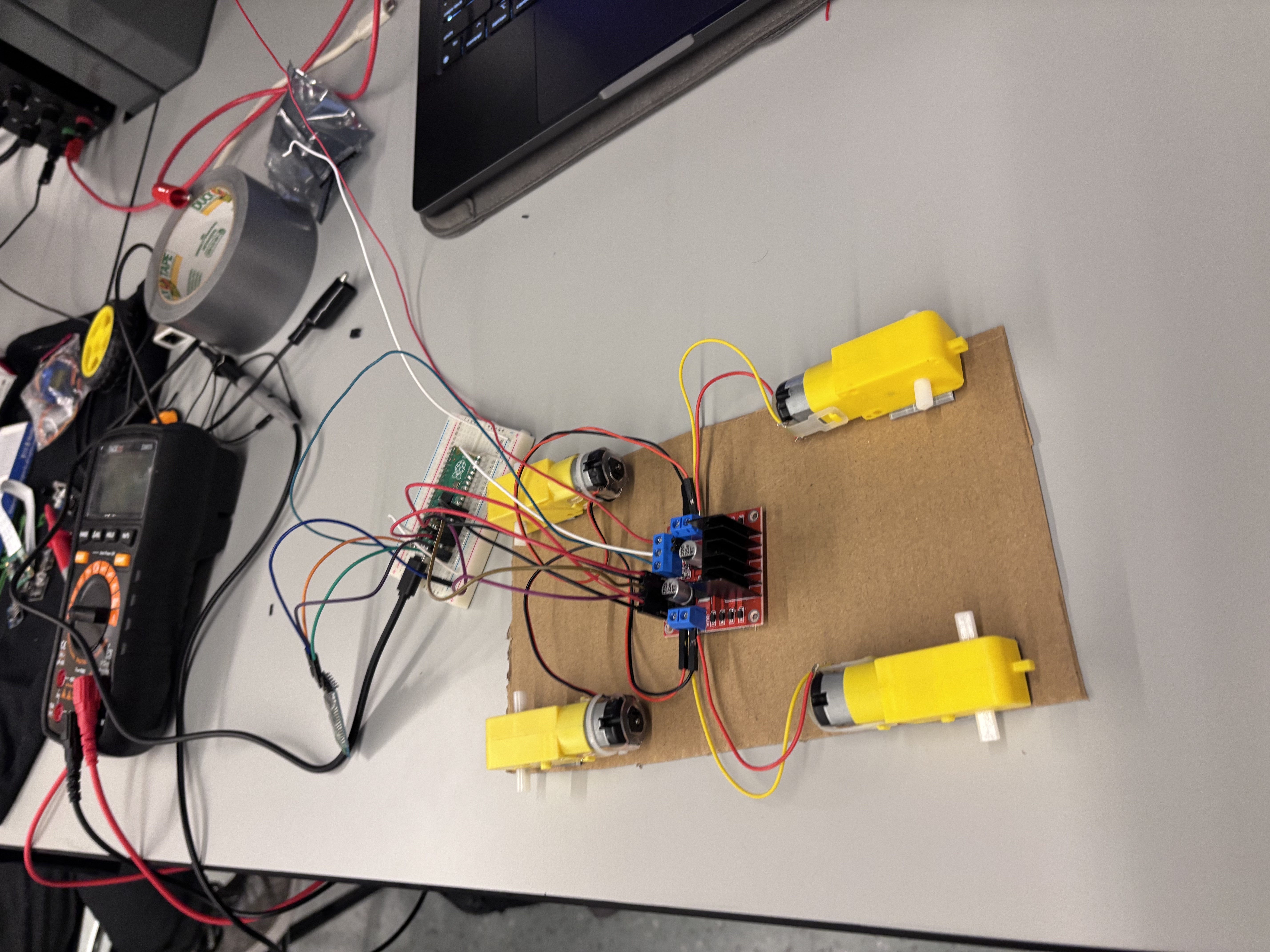 - Assembling the chassis, motors, motor driver, Raspberry Pi, camera, and battery packs into one machine. ~7hrs