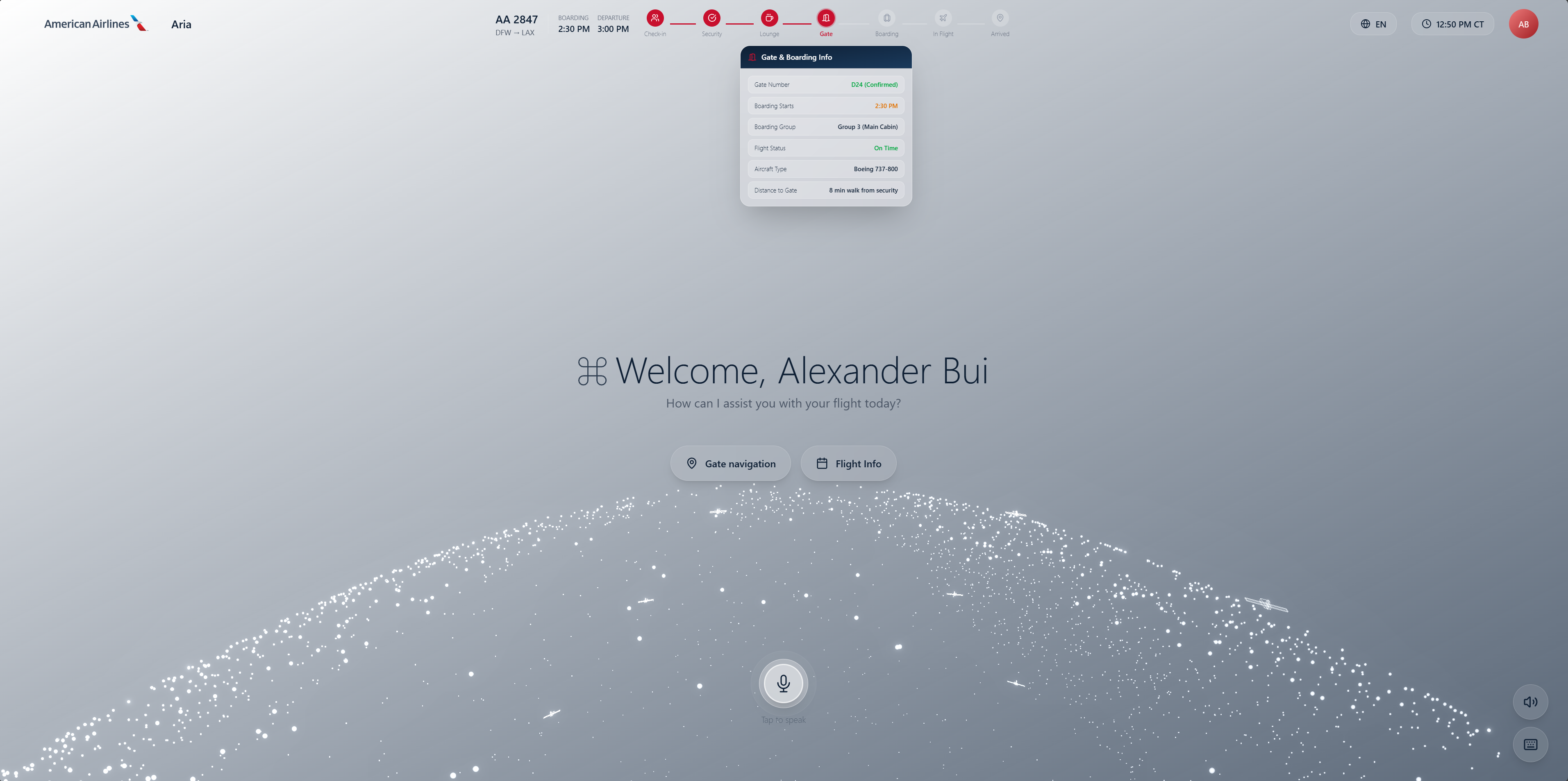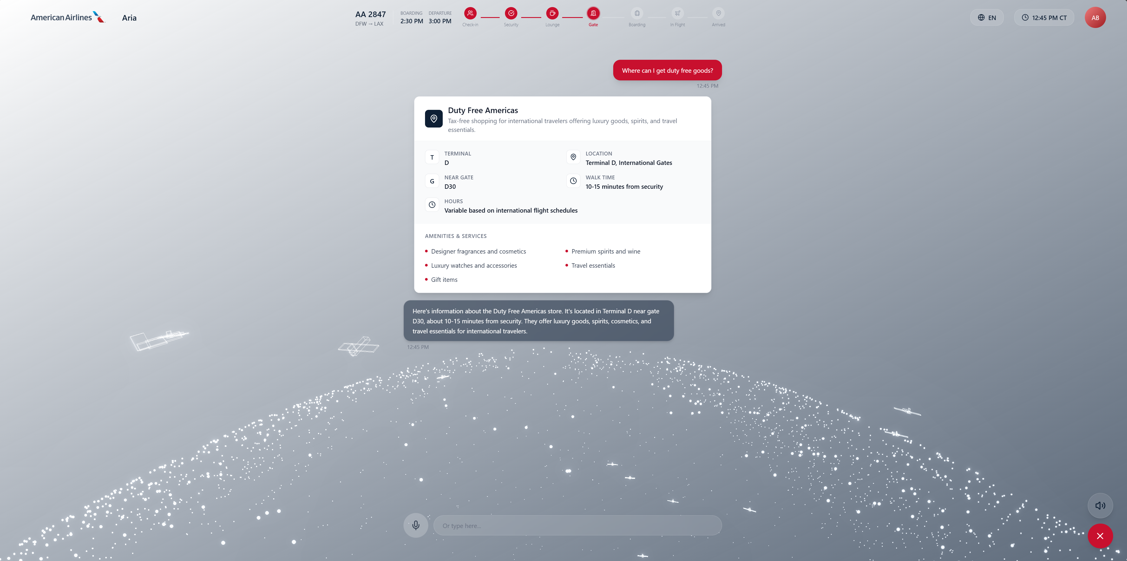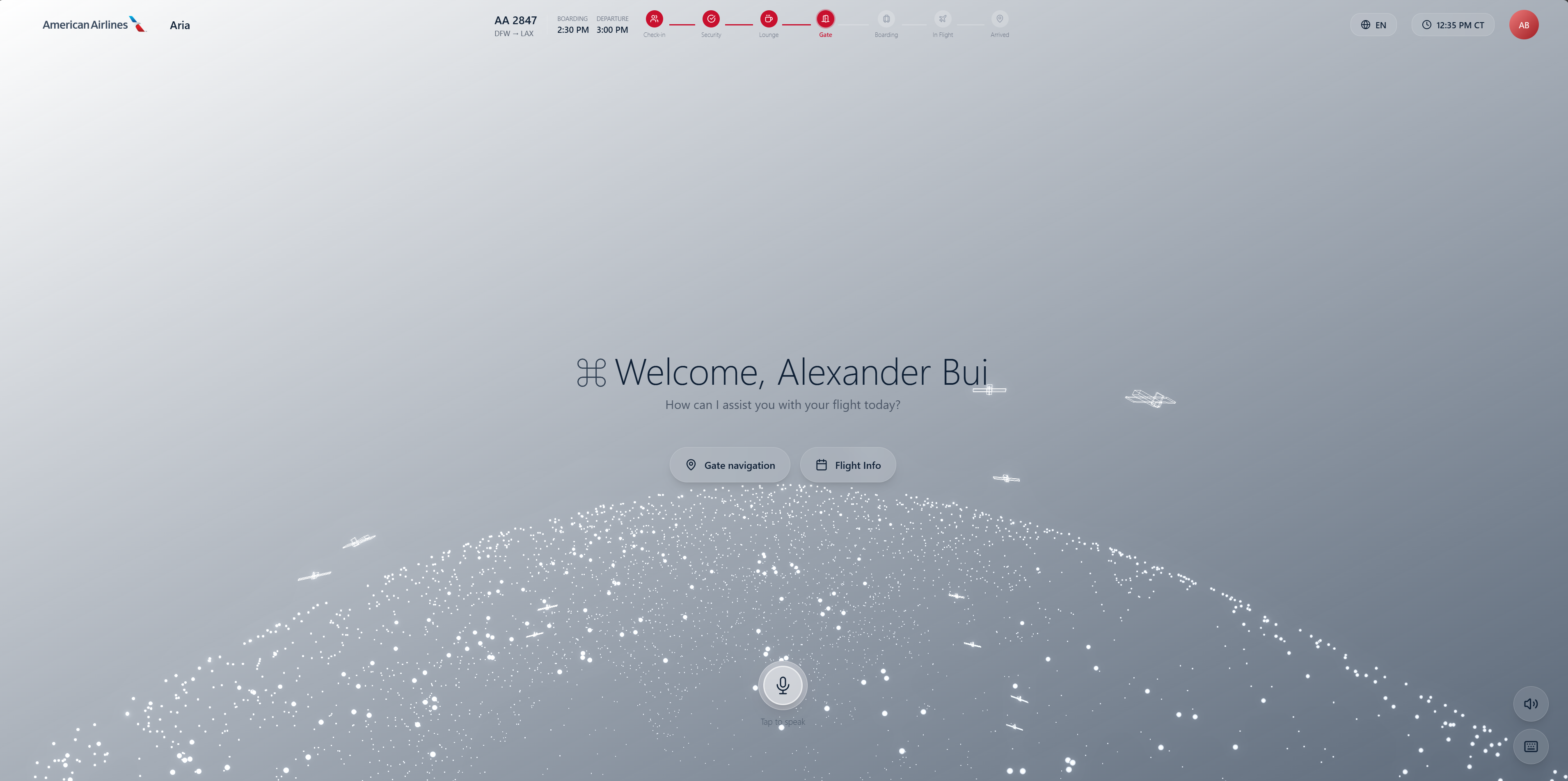 Traditional airport kiosks rely on touchscreens that are unhygienic, hard to use with luggage, and lack personalization. We wanted a voice-first, multimodal AI assistant that feels natural and helpful—like talking to a knowledgeable airport employee. By combining conversational AI with a 3D visual interface, we make airport navigation more intuitive and engaging.