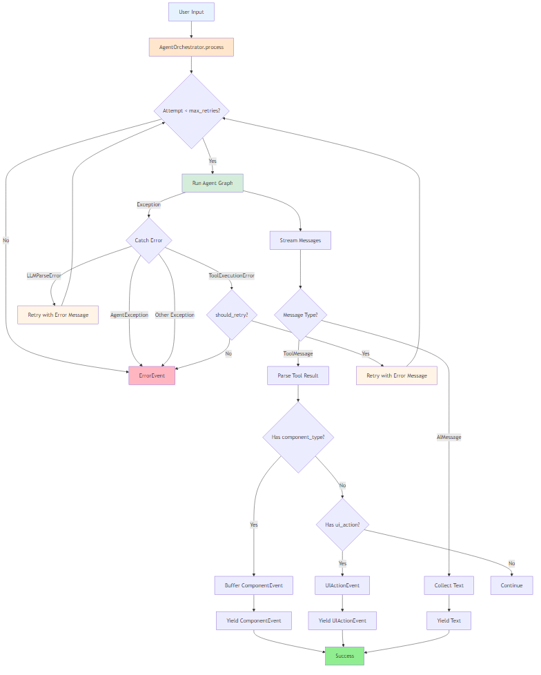 - Self-correcting agent loop with retry logic