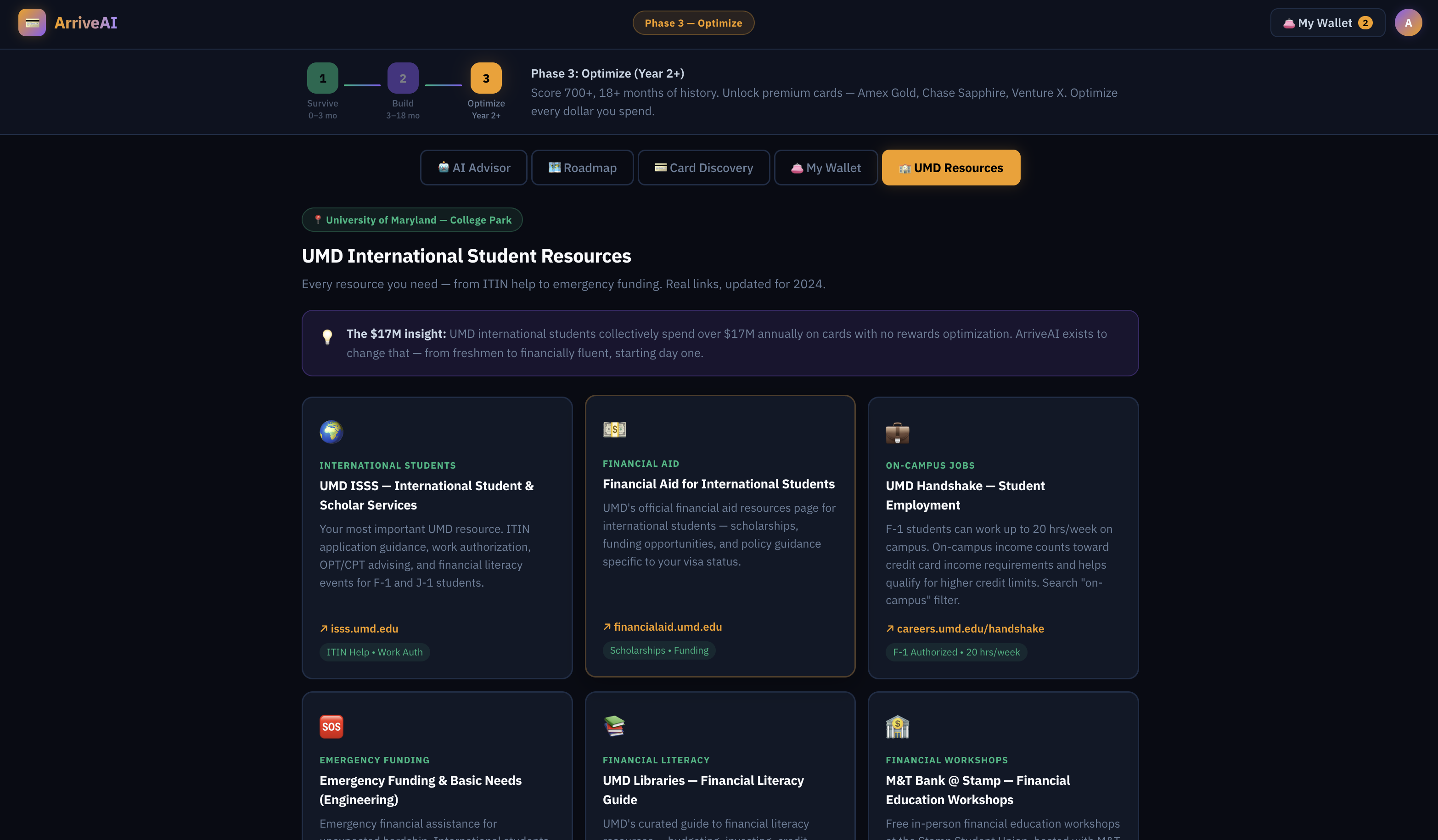 The number that made this real: UMD international students spend over $17 million annually on credit cards with almost none of it optimized. That's millions in missed cashback and lost points walking out the door every year.