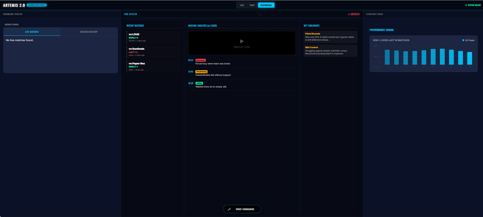 ARTEMIS 2.0 is not just a dashboard — it’s a decision-making companion for esports coaches.