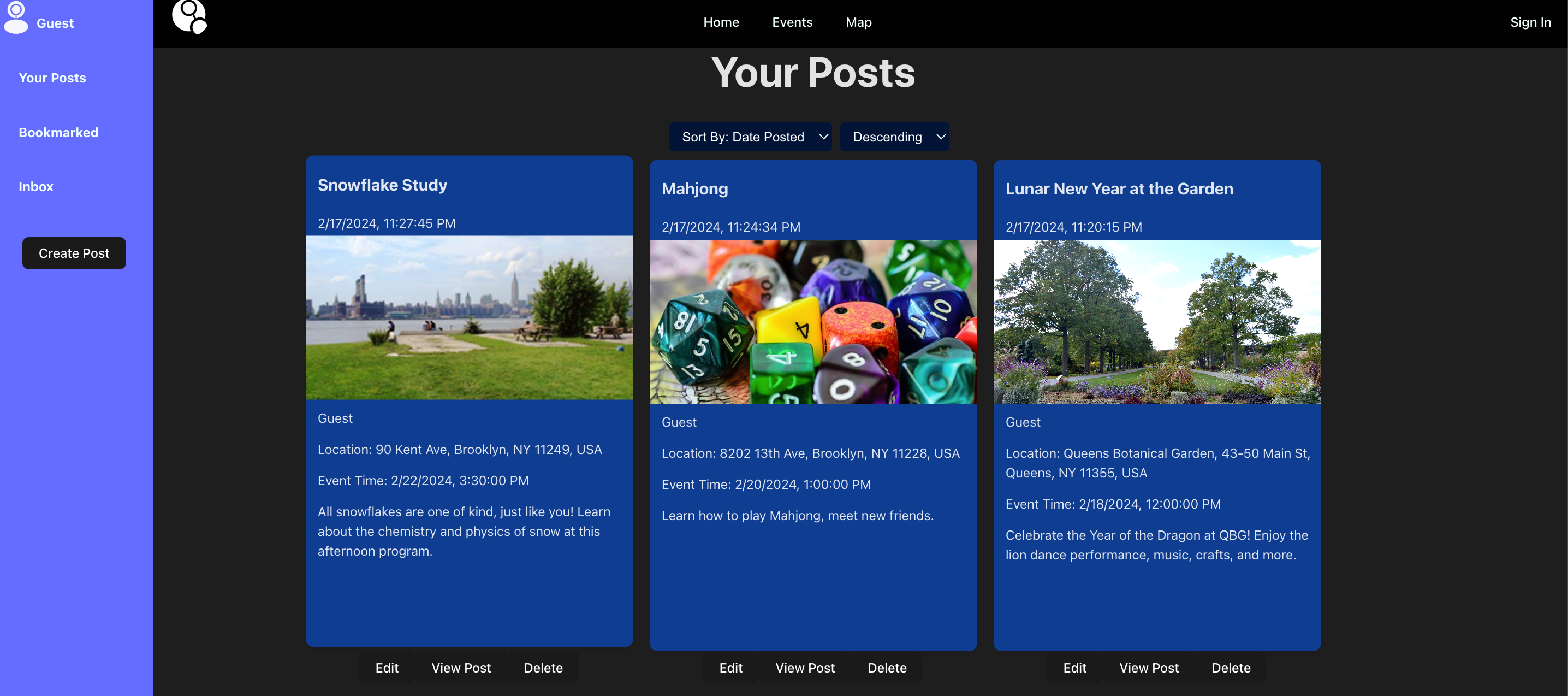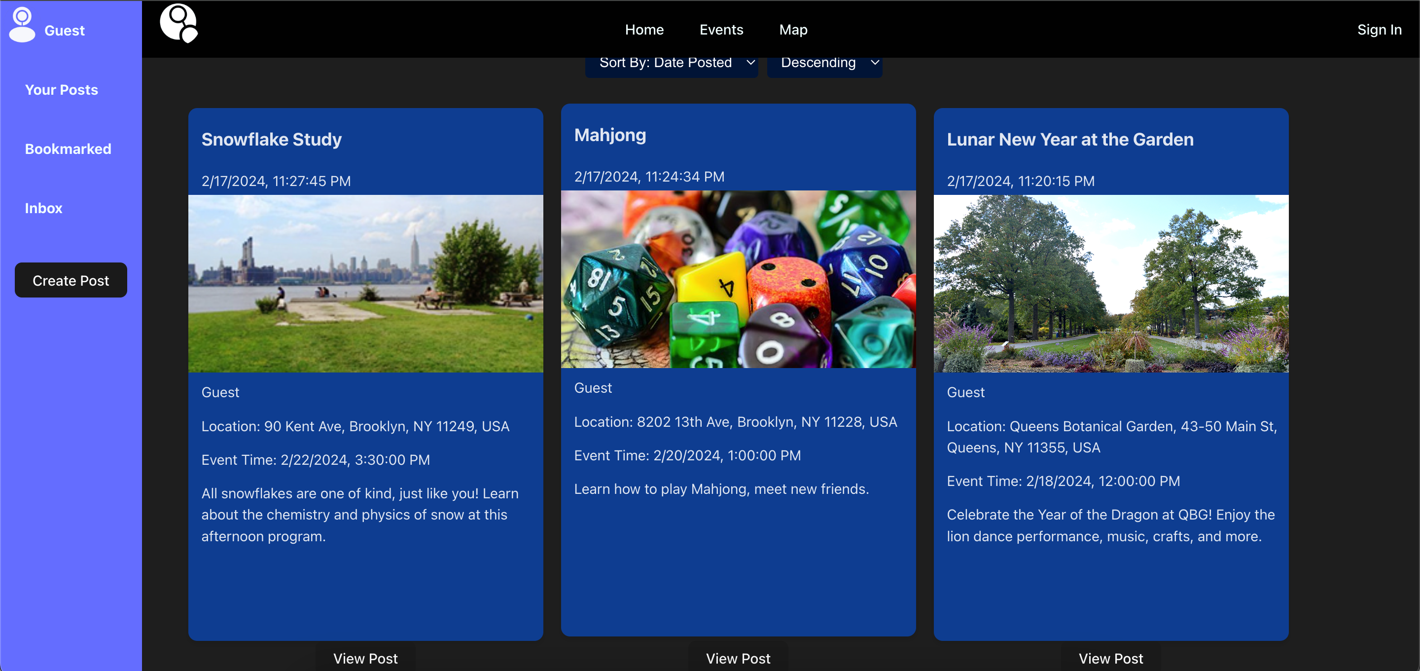 With packed schedules and busy lives, connecting with others can be a huge challenge. We’ve heard many stories of people finding themselves isolated, especially after the pandemic, with no direction pointing them towards social connection. Therefore, our goal with this project is to point people towards opportunities in which they could find that social connection.