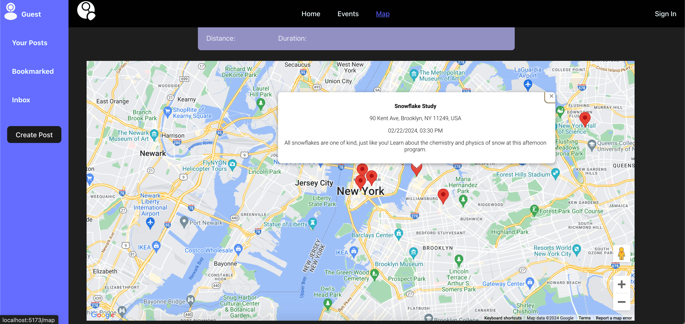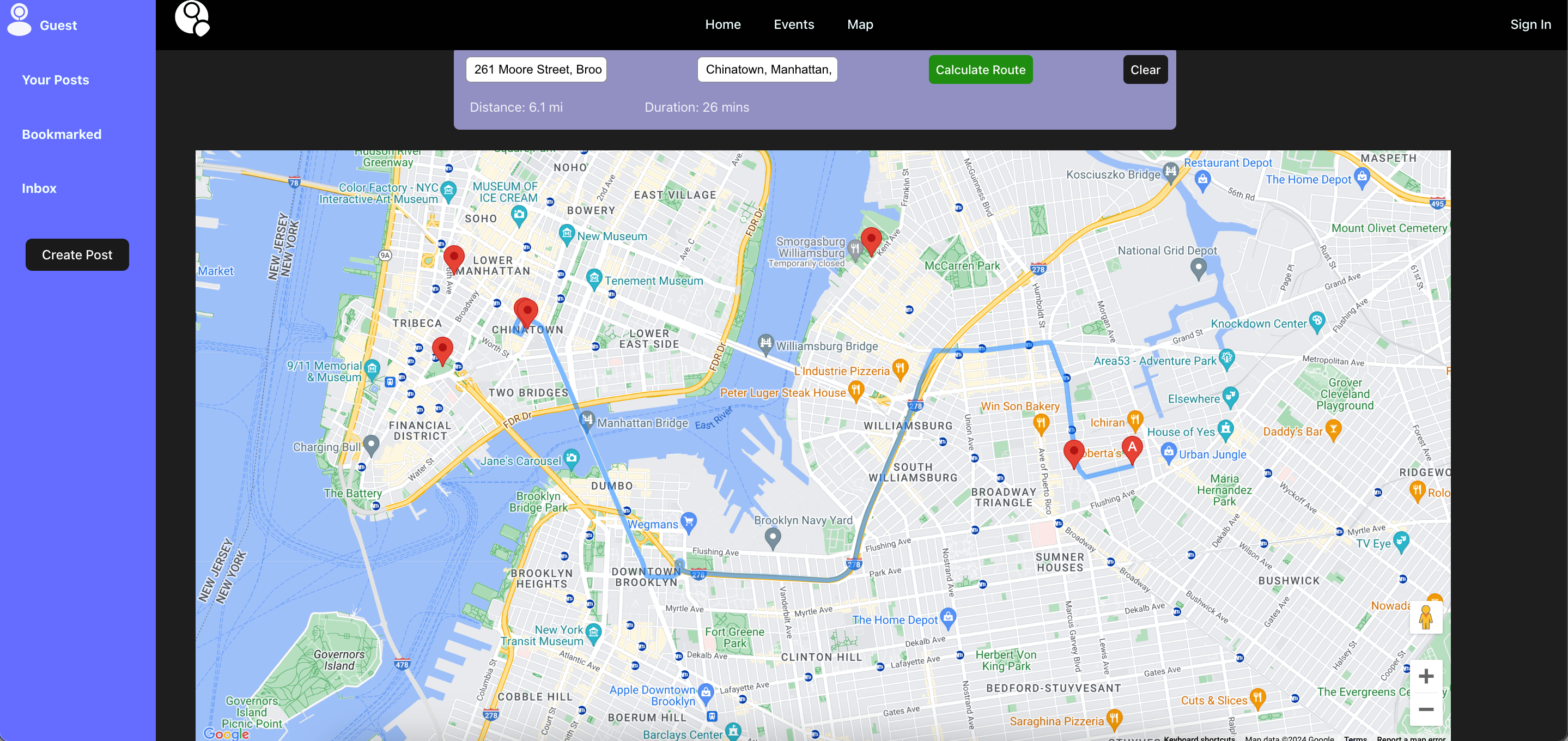 - Learning how to use new technology such as Firebase, React, and Google Maps API