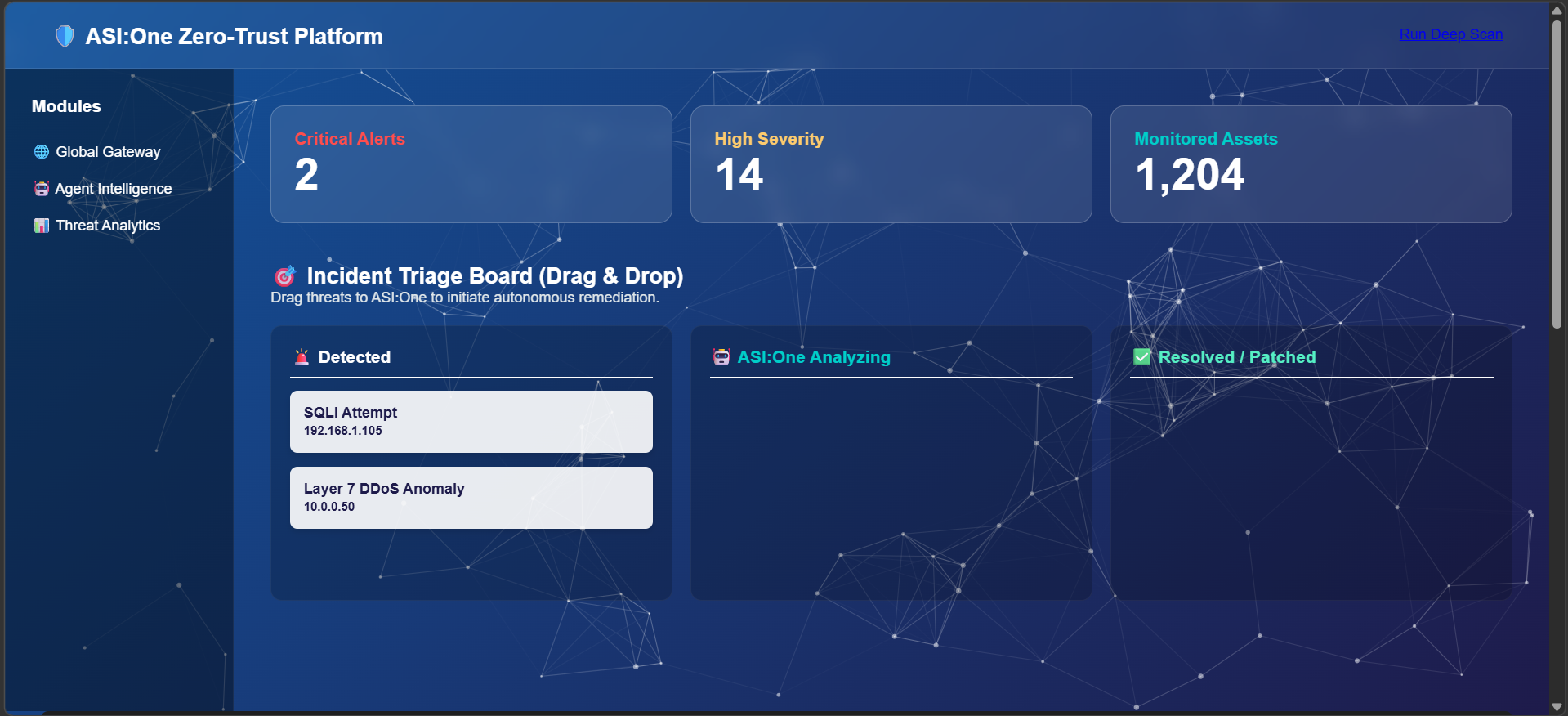 🛡️ What it does ASI-1 Industrial Threat Shield is an autonomous Zero-Trust platform designed for industrial cloud gateways. It uses Agentic AI to monitor live network telemetry, detect anomalies like SQL injections or Layer 7 DDoS attacks, and provides a "Triage Board" where users can drag-and-drop threats for the AI to autonomously quarantine and remediate.