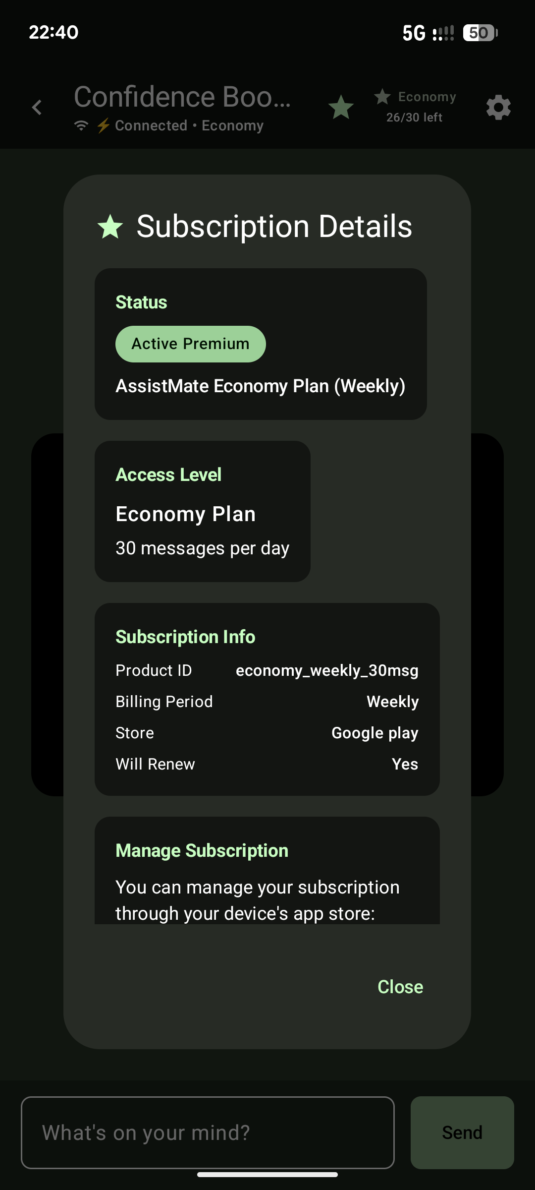 ✅ Created an AI assistant that truly remembers context and adapts to user needs ✅ Users can create unlimited expert roles, making it deeply personal ✅ Successfully implemented three modes for different user budgets and needs ✅ Made AI accessible with 10 free questions daily forever ✅ Designed honest pricing ($2-18/month) with transparent trial periods ✅ Built safety measures so AI avoids harmful advice ✅ Achieved 86-90% profit margins, proving social good can be sustainable Most proud of: Helping my shy friend gain confidence, then realizing this could help millions of others too.