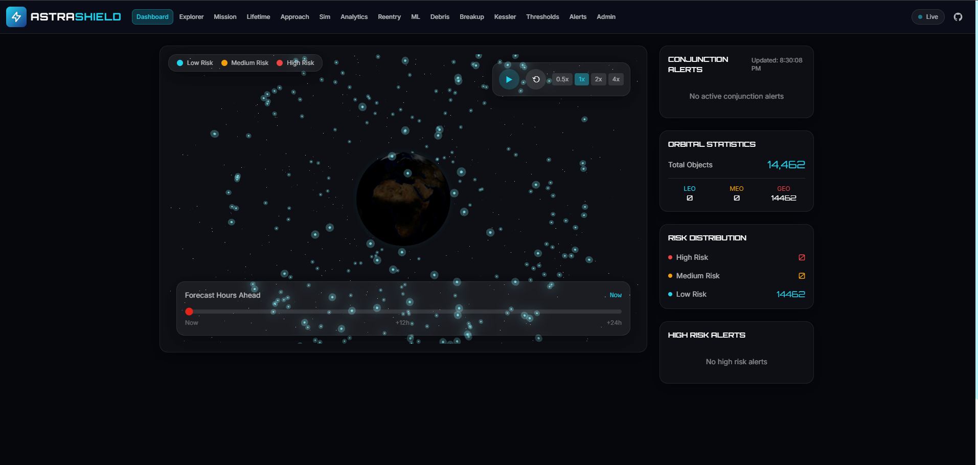 The increasing number of satellites and orbital debris has made Earth’s orbit more congested and unpredictable. Even small fragments can cause catastrophic damage due to high orbital velocities, and collisions can lead to cascading debris events that threaten long-term space sustainability. I was motivated by the need for a system that not only visualizes orbital activity but also provides structured risk analysis and predictive insights. AstraShield was built to address this gap by combining real-time data, analytical models, and simulation tools into a unified platform.
