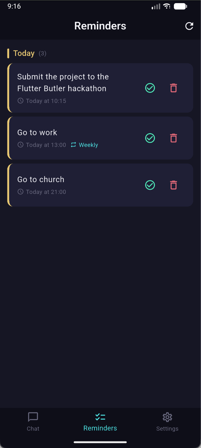 Challenges I ran into: Notification customization proved tricky, especially getting icons to display correctly across platforms. Building context awareness into the AI required implementing RAG with vector embeddings. The agent needed to remember what you told it and find related reminders intelligently. Serverpod has its own abstractions and patterns that took time to learn properly.