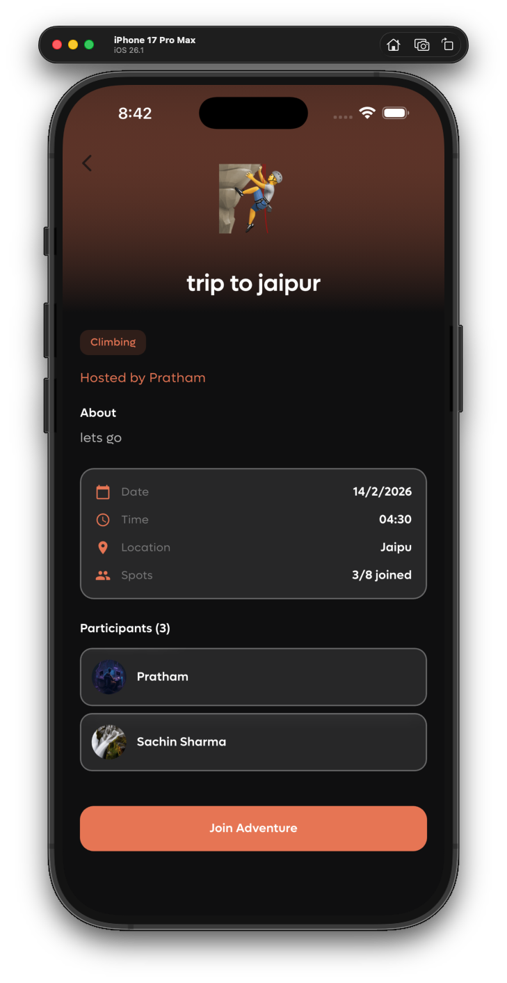 - Connect — Tinder-style swipe matching for dating and activity-based friend finding (hiking, climbing, surfing, photography)