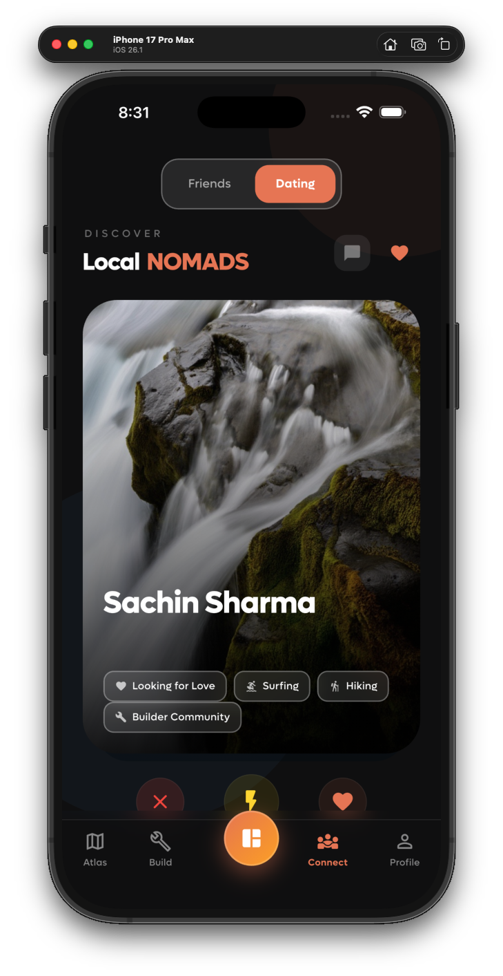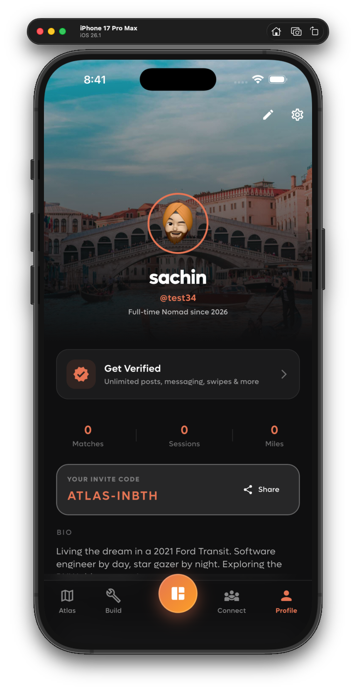 ATLAS was born from this gap. We asked Quin: what if there was a platform designed specifically for nomads? A place where dating, friend-making, and expert help all exist in one beautiful, trust-enabled space?