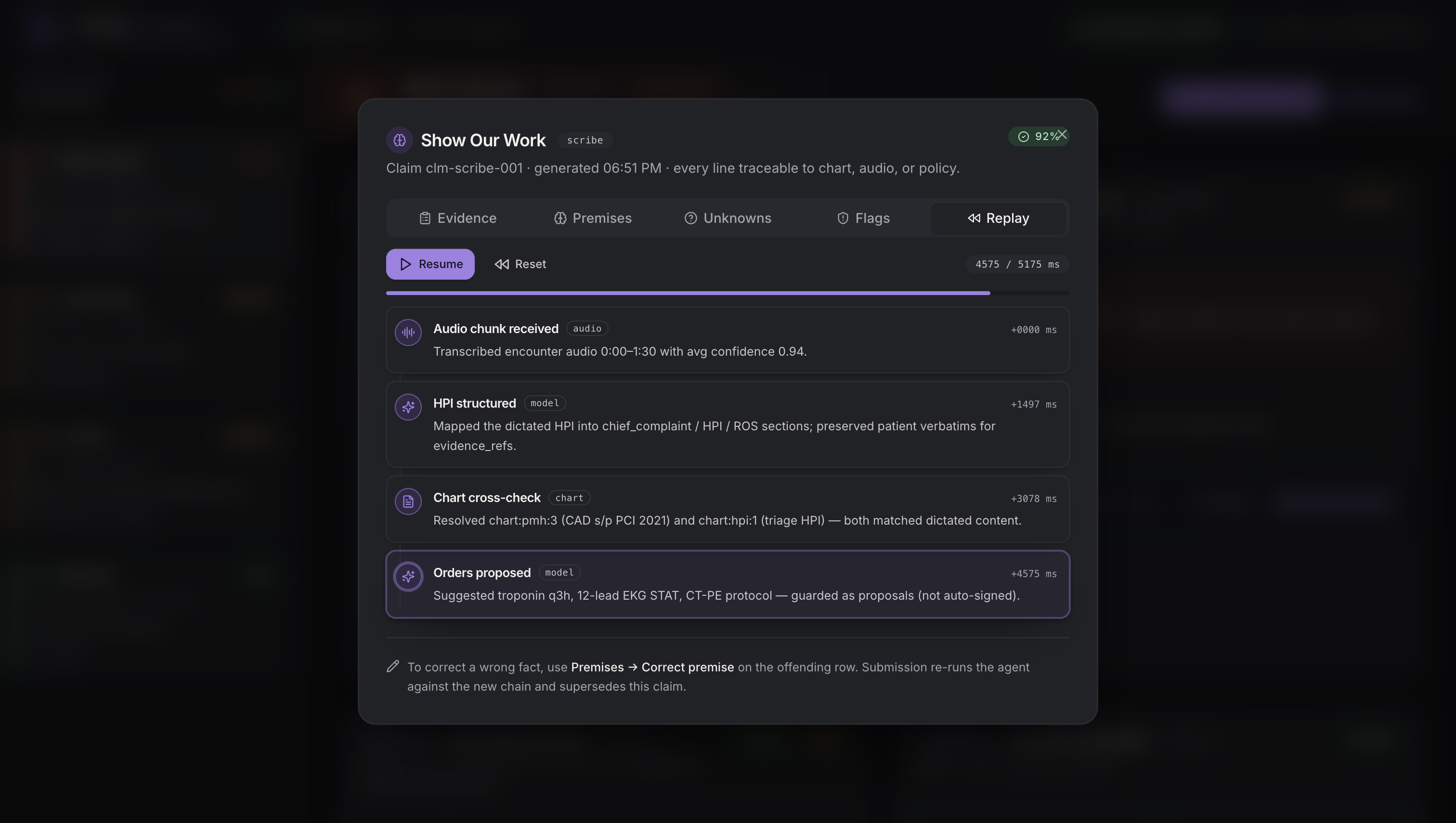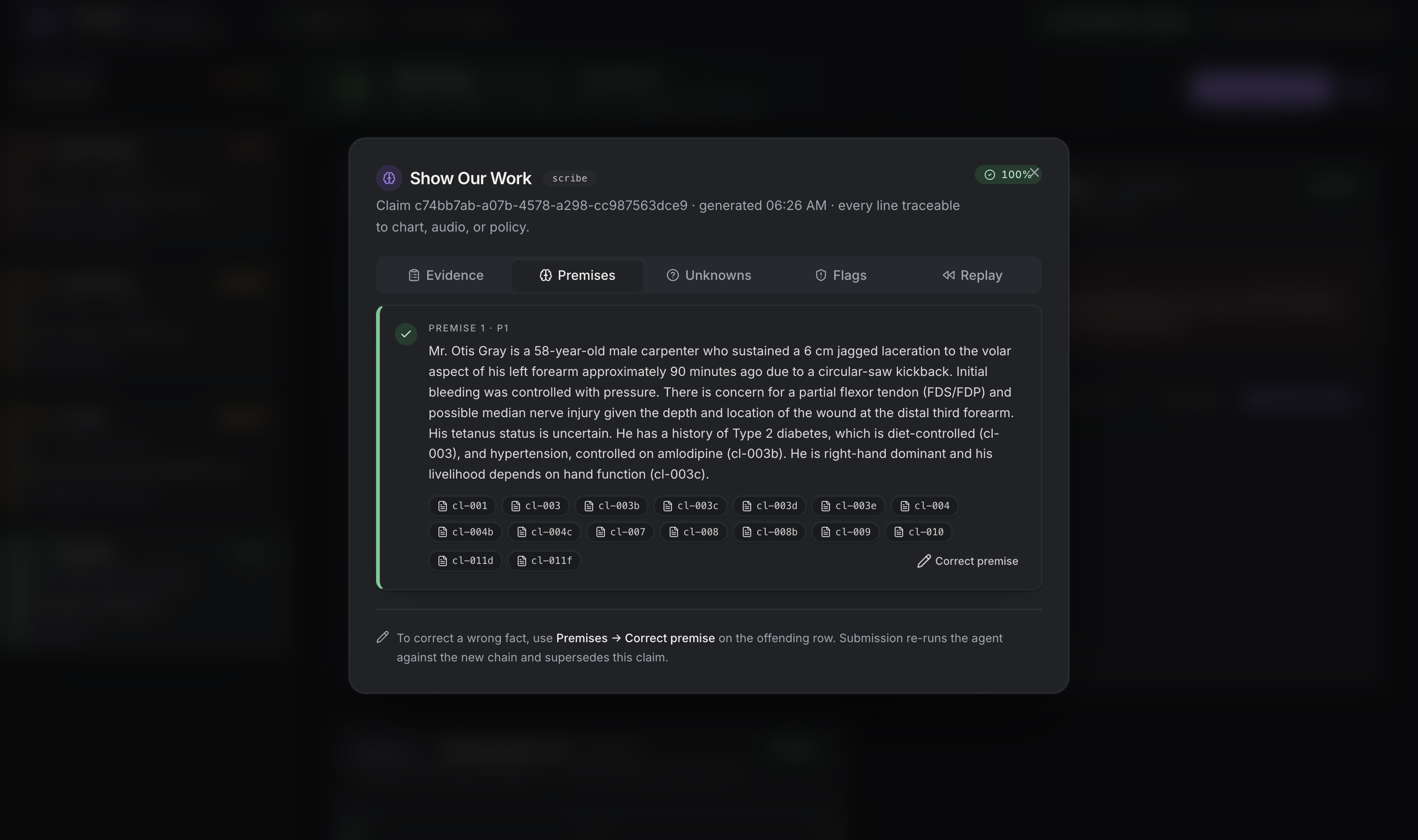 The key feature is “Show Our Work”. Every claim is backed by evidence and a reasoning chain that doctors can inspect and correct. If a premise is wrong, the system recomputes instantly.