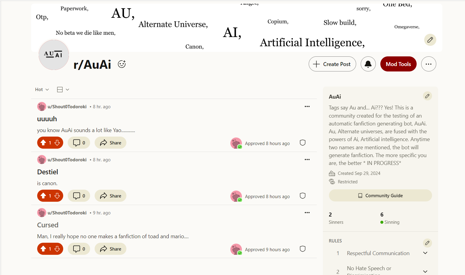 We learned the challenges of working with Ai on open community forums. As our current subreddit states, AuAi3causewegotbanned... we got banned. A few times... We learned our lesson about religious figures. Goodbye 7 year old reddit account....