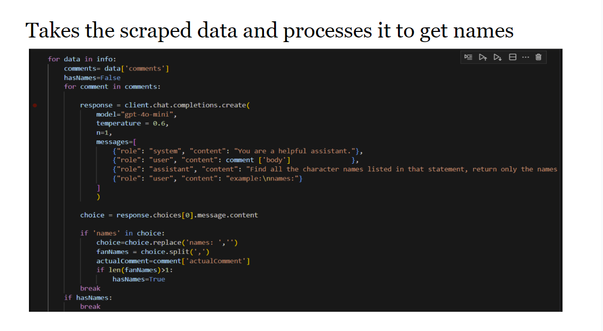 We learned how to work through the troubles of pulling requests from GitHub into branches, integrating OpenAi into a reddit bot, and how to get that reddit bot onto a server.