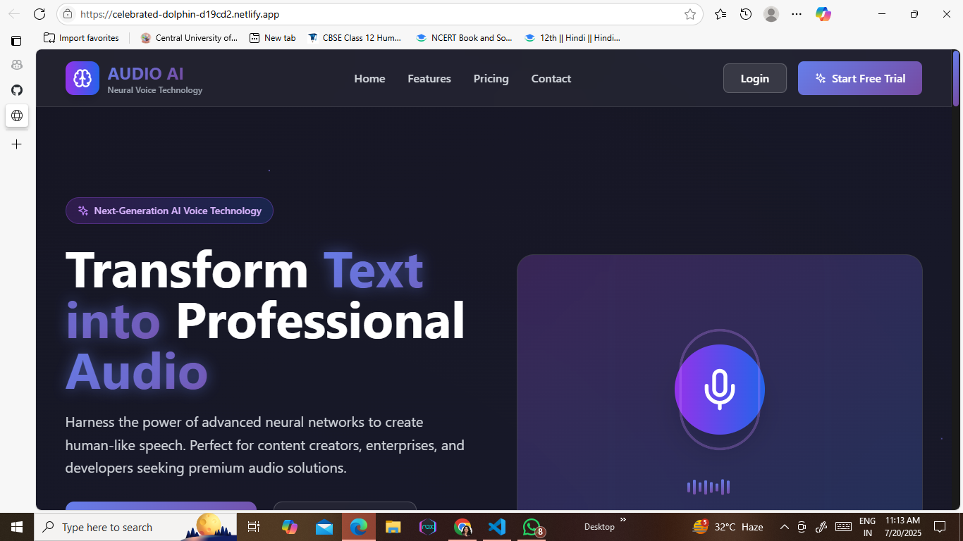 We dreamed of a tool that was simple yet smart, powerful yet personal. No APIs. No coding. Just a beautifully designed platform where users could type, speak, listen, and transform content effortlessly. Through months of learning, testing, and refining, Audio AI was born—a product crafted with heart, driven by AI, and inspired by human needs.