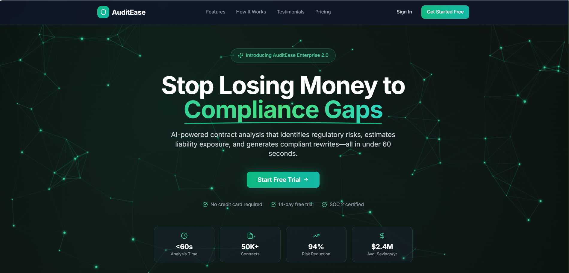 AuditEase Hero Section – AI-Powered Contract Analysis