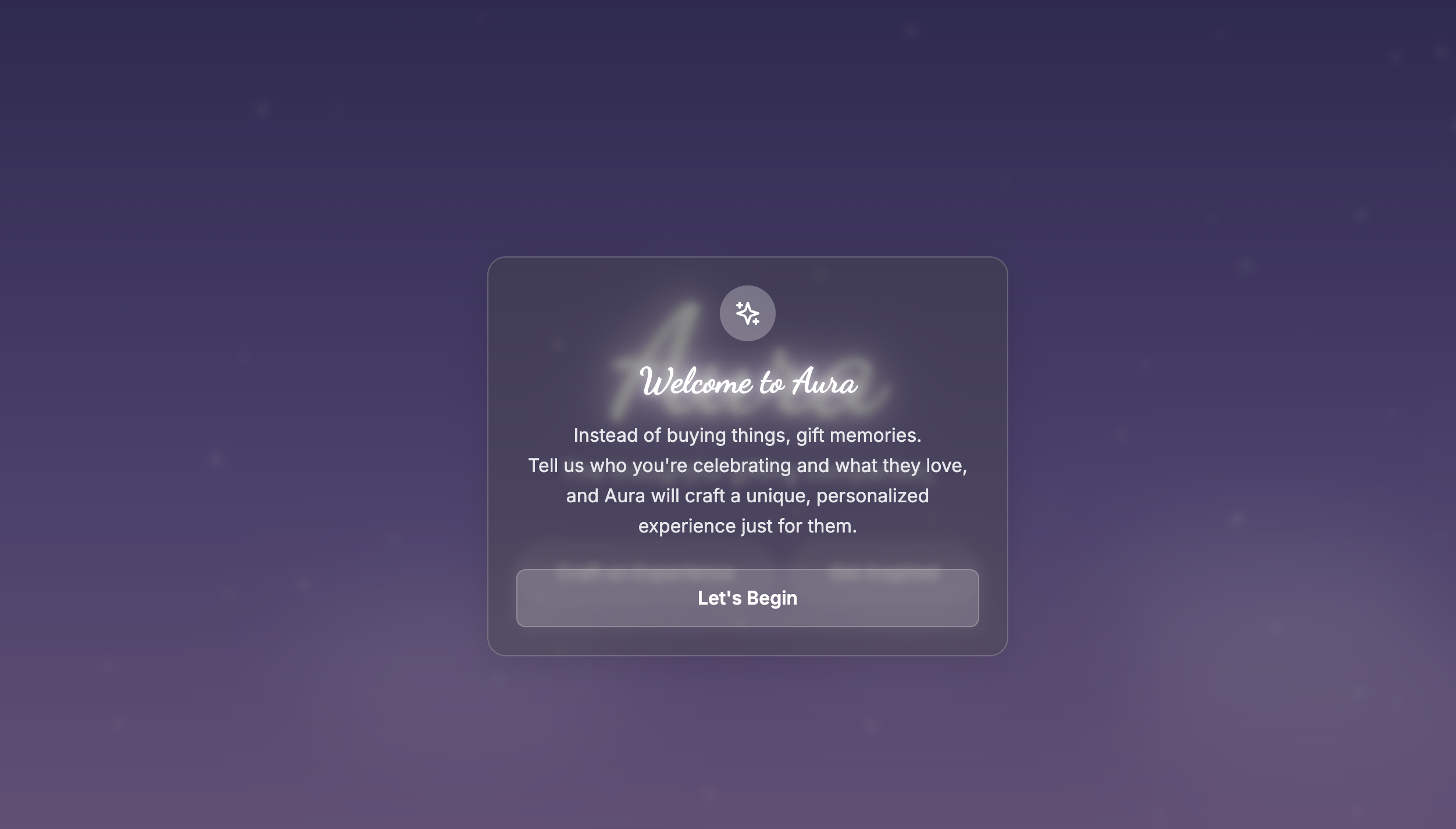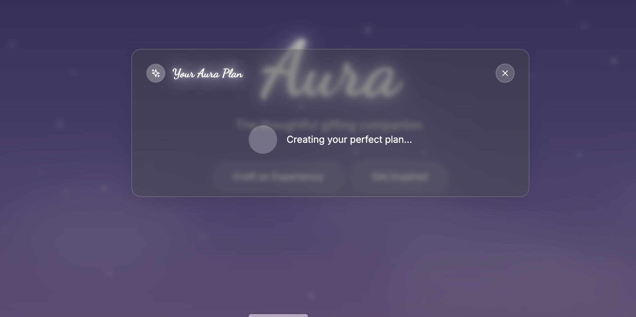 What Aura Can Do 🎯 Personalized Experience Planning Smart Recommendations: Input someone's interests (like "jazz music," "artisan coffee," or "vintage photography") and get curated venue suggestions AI-Generated Plans: Receive detailed, narrative experience plans written by Google's Gemini AI Cultural Intelligence: Powered by Qloo's API to understand cultural connections and preferences Location-Aware: Finds experiences specific to your chosen city or neighborhood 🎁 Gift-Focused Design Audience Selection: Create experiences for partners, friends, family, or yourself Occasion-Based: Tailor experiences for birthdays, celebrations, thank-you gifts, or spontaneous surprises Budget Considerations: Choose from $ (budget-friendly) to $$$ (premium) price ranges Exclusion Filters: Avoid things the recipient doesn't enjoy (crowds, spicy food, etc.) ✨ Intelligent Features Real-Time Suggestions: As you type interests, get instant suggestions from Qloo's cultural database Contextual Recommendations: Location-aware suggestions (e.g., "Broadway Shows" for NYC, "Coffee Culture" for Seattle) Surprise Mode: Generate spontaneous experiences with minimal input Enhanced Search: Find experiences by category, rating, or specific interests 🎨 Beautiful User Experience Dreamy Aesthetic: Gradient backgrounds with floating animations and starfield effects Interactive Elements: Like, bookmark, and share experiences Responsive Design: Works beautifully on desktop and mobile devices Micro-Interactions: Smooth hover states and transitions throughout Example Use Cases Birthday Gift: "My partner loves jazz and artisan coffee in Brooklyn" → Get a curated plan with specific venues, addresses, and booking information Thank You Gift: "My friend enjoys art galleries and wine tasting in Manhattan" → Receive a thoughtful experience combining both interests Surprise Mode: "Create something spontaneous for my sibling in Los Angeles" → Get unexpected recommendations based on demographic insights Self-Care: "I want a relaxing solo experience in San Francisco" → Discover mindful activities and quiet spaces