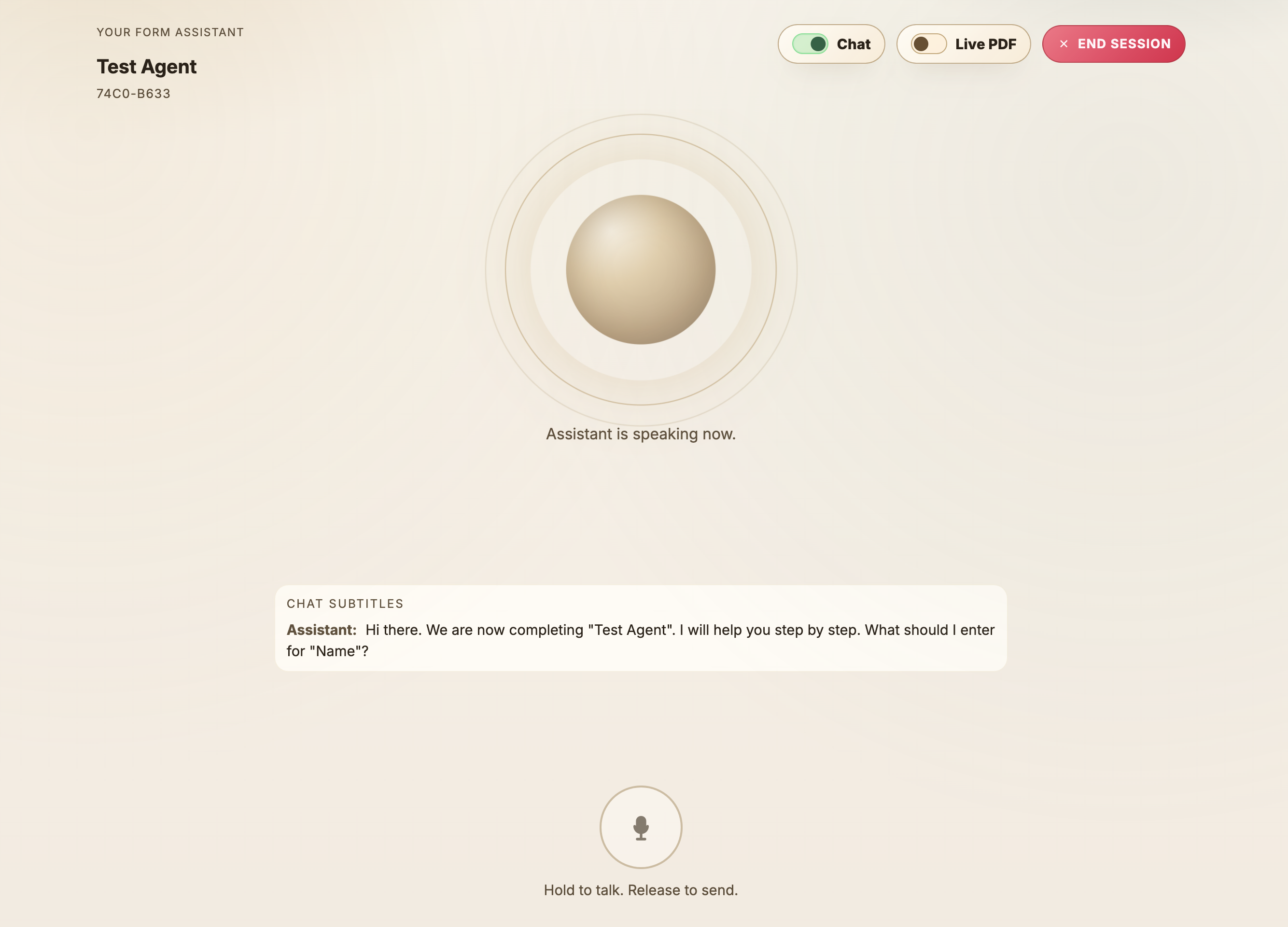 Filling out complex forms is stressful, slow, and often confusing, especially when there's governmental jargon involved. If you don't speak the language well or you're an immigrant, it can be a massive headache just to get basic paperwork done. We wanted to turn that stressful chore into a calm, guided voice experience in the user's native language that actually feels human. We also wanted to help out small businesses so they don't have to waste their employees' time doing manual intake over the phone or in person.
